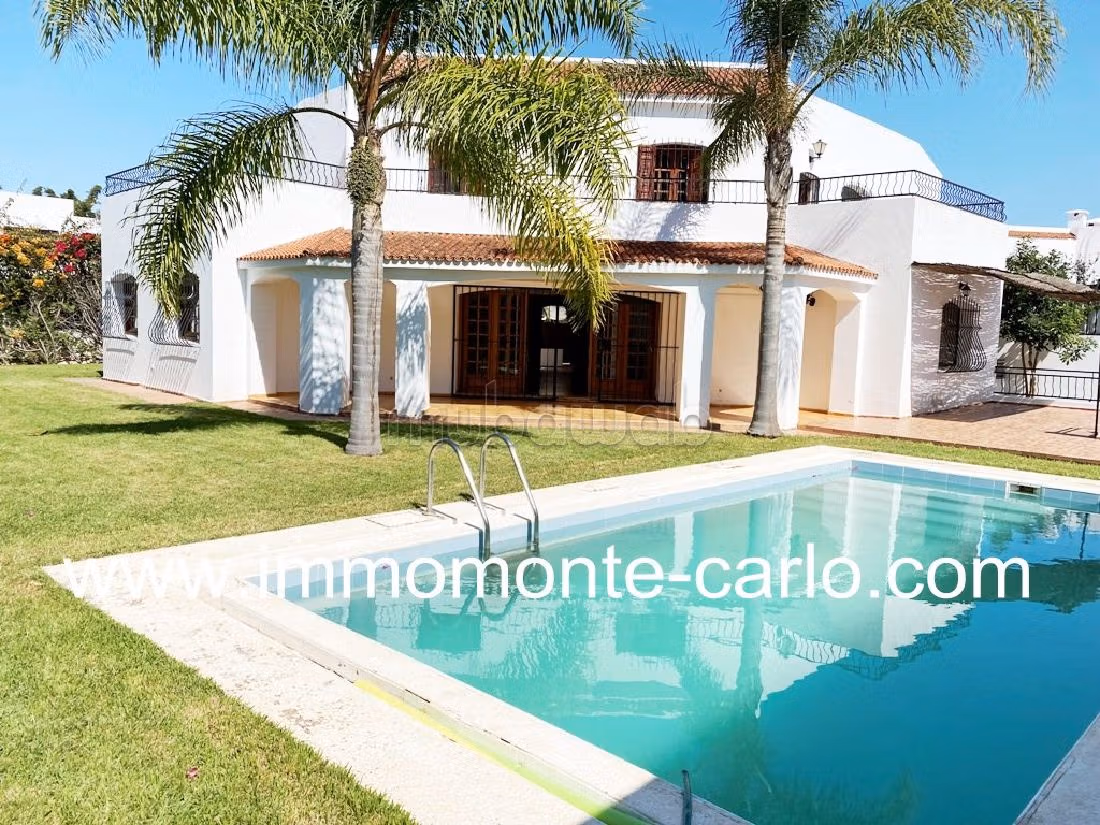 A louer villa à Hay Riad Rabat villa avec chauffage central et piscine , construite sur trois niveaux, villa en bon état, ensoleillée et très bien située proche de toutes commodités dans un endroit calme avec jardin entretenu avec puits, garage automatique, chambre de service, pièce de rangement et composée de :