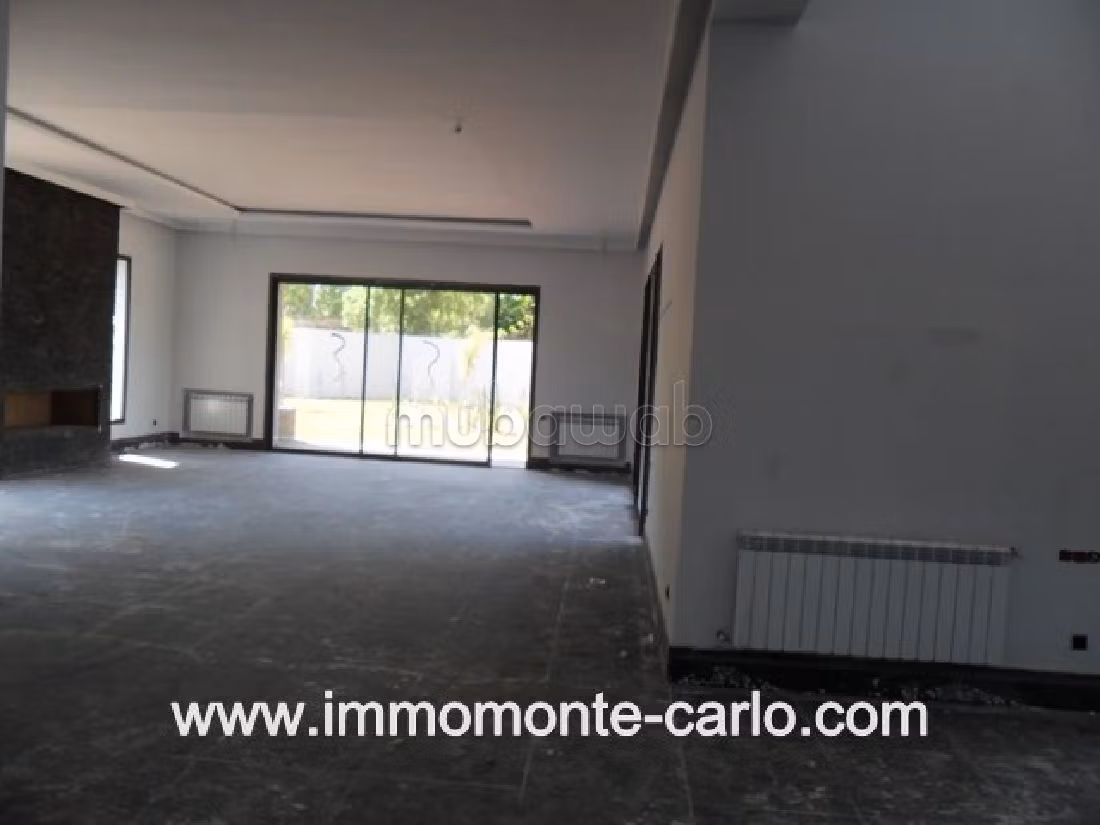 à Rabat location villa neuve haut standing au quartier Souissi, chauffage central, entourée d’un grand jardin bien aménagé avec piscine , le rez de chaussée composé d’une grande réception avec sa jolie cheminée, salle à manger, salle d’eau des invités avec double vasque, terrasse donnant sur la piscine et le jardin, chambre d’amis avec salle de bain, cuisine de qualité avec plan de travail central . A l’étage se trouvent suite parentale avec salle de bain jacuzzi, douche et dressing, 3chambres, 3salles de bain, terrasse et balcons, et le sous-sol comprend salle de sport (ou salle de jeux), une buanderie, débarras, une salle de bain, une cuisine donnant sur une cour anglaise, logement de personnel,….