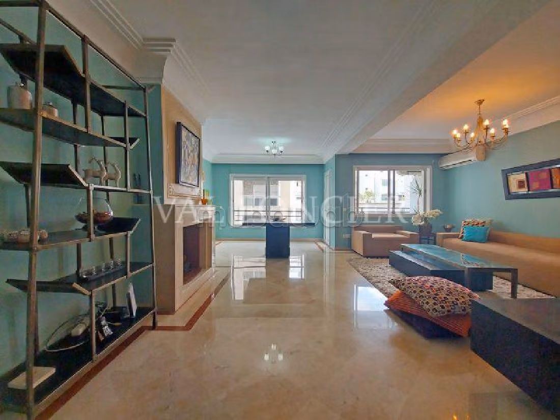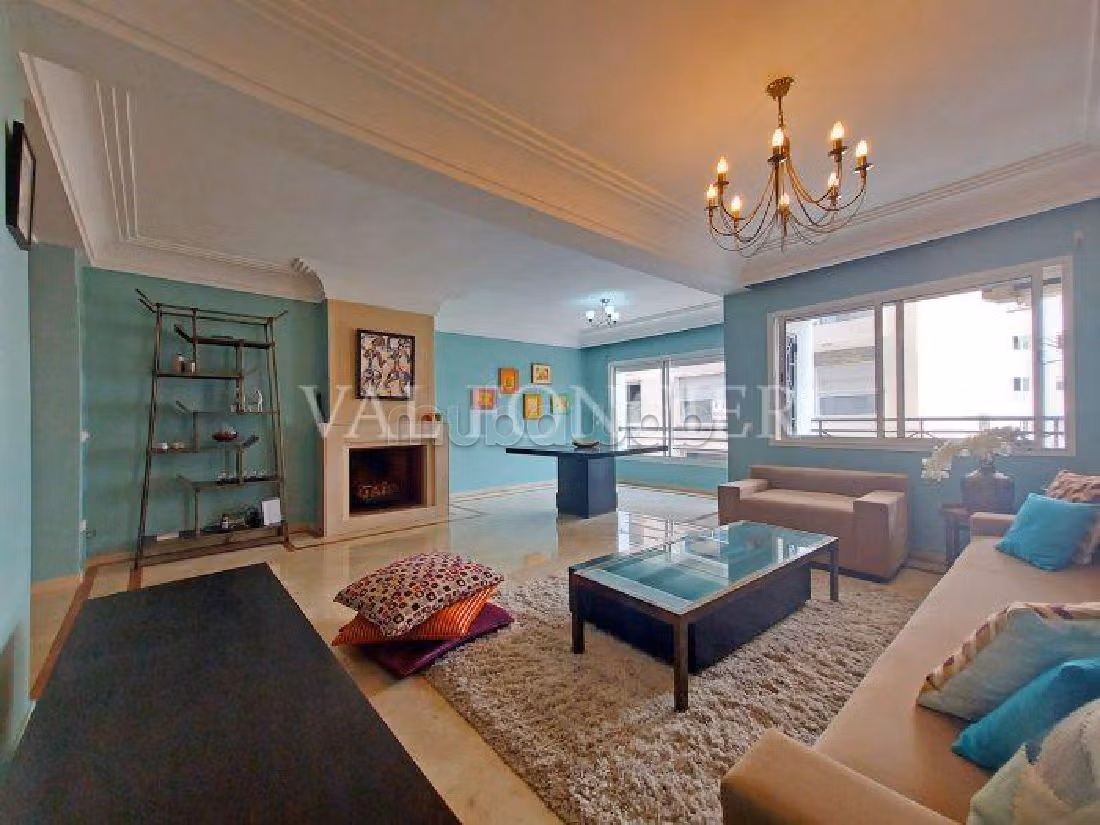 Location d'un très joli appartement situé en plein triangle d'or à Casablanca.Caractéristiques :- Double salon avec cheminée et coin salle à manger- 2 balcons- Une suite parentale avec salle de bain et dressing- 2 autres chambres- Une 2ème salle de bain- Une salle d'eau- Une cuisine avec buanderie et chambre pour le personnel- Une place au garage- Appartement entièrement meublé et équipé Votre conseiller VAL FONCIER : Badria Bensmail - Tél. 0707148807