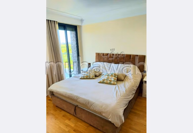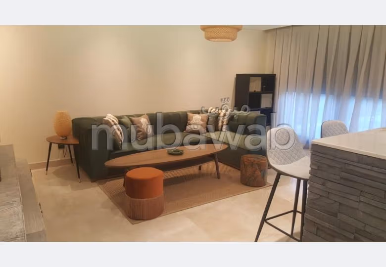 Louez l'appartement de vos rêves. Prix 11 000 DH. 3 pièces, 2 chambres, 2 salles de bains, surface 110 m². 1er étage. Moins de 5 ans. Type de sol: Marbre. Bien meublé.