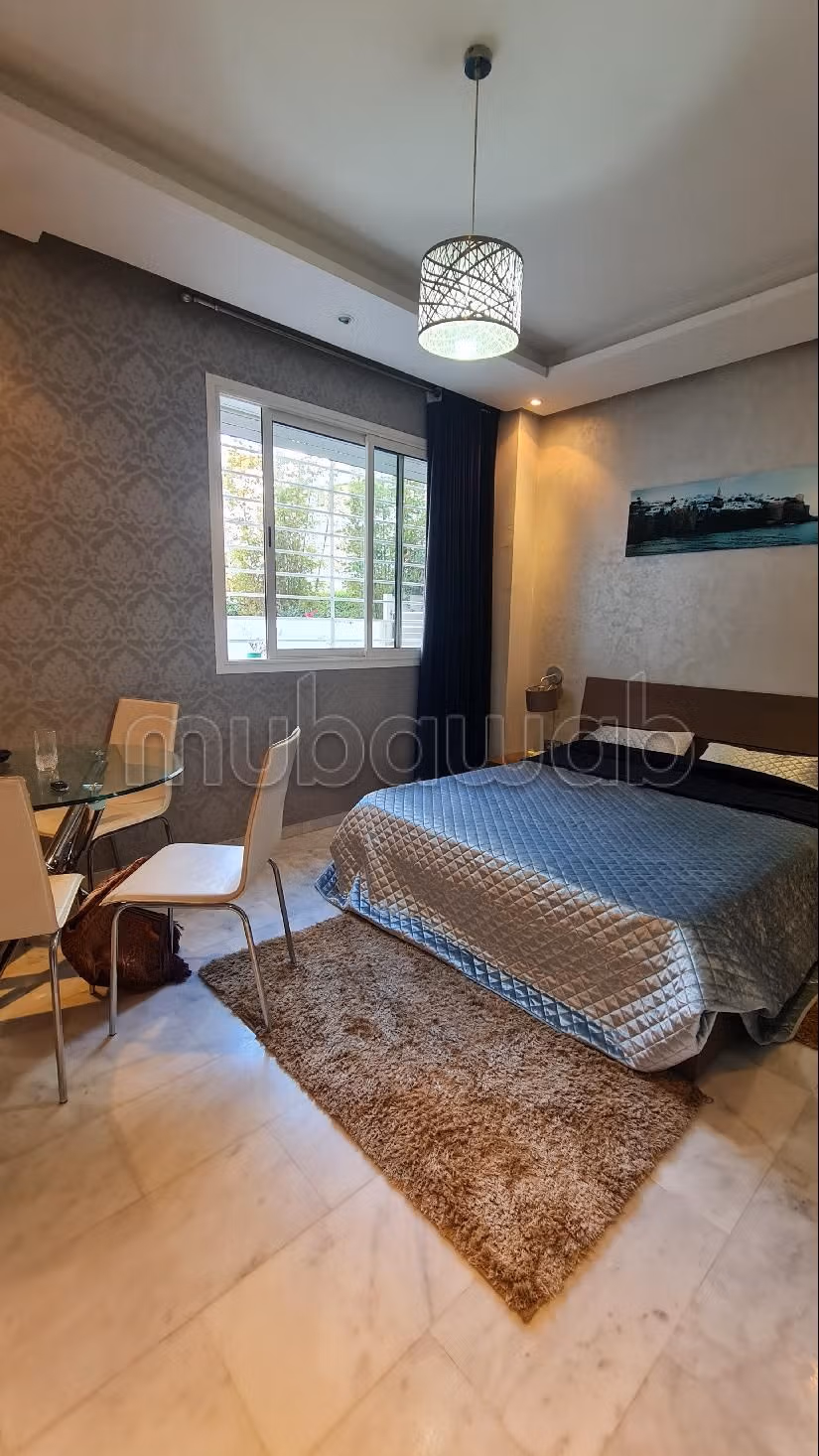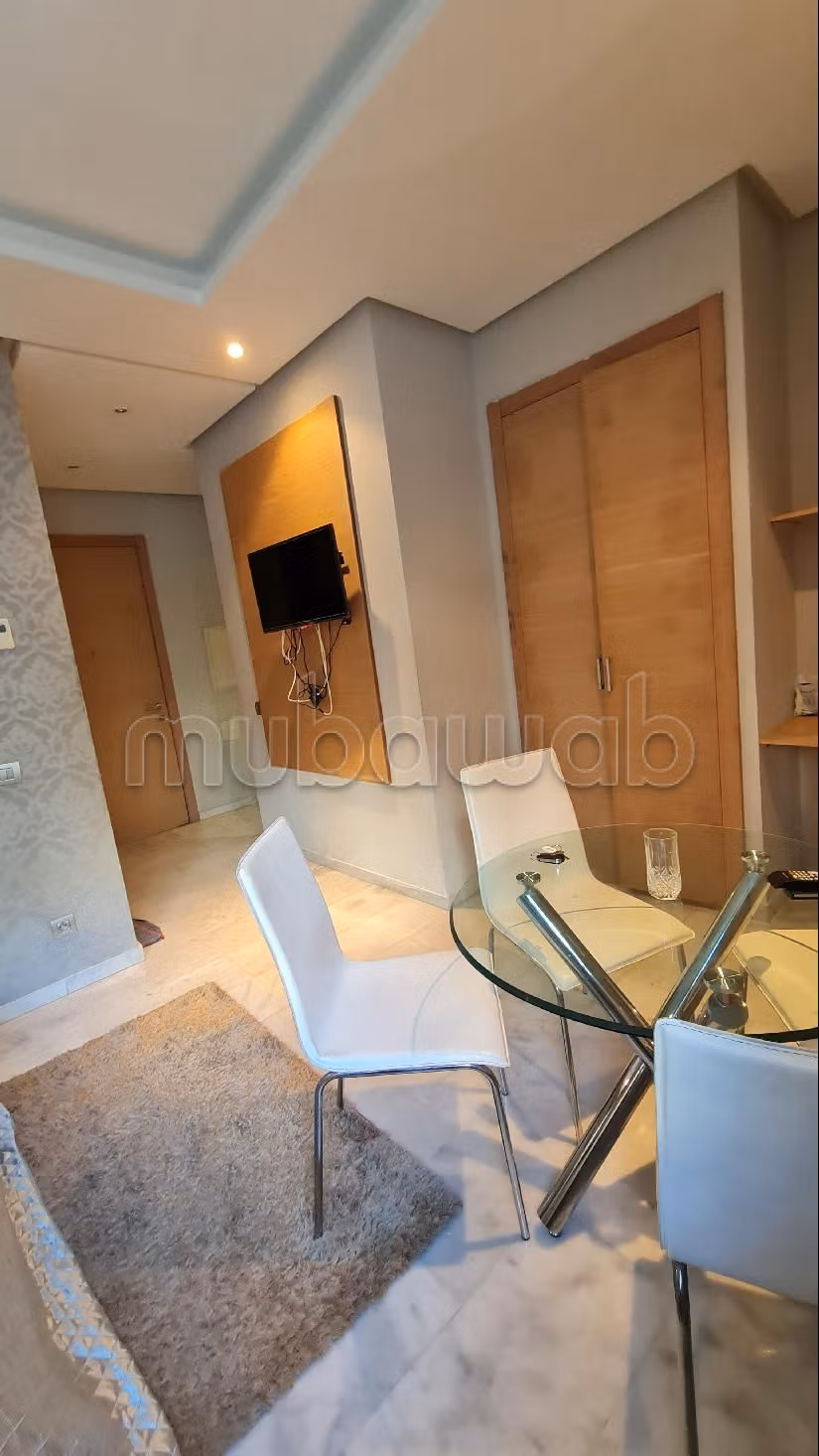 Louez l'appartement de vos rêves. Prix 6 500 DH. 1 salle de bains, superficie de 32 m². 1 Pièces. 1 chambre. Moins de 5 ans. Type de sol: Marbre. Entièrement meublé.