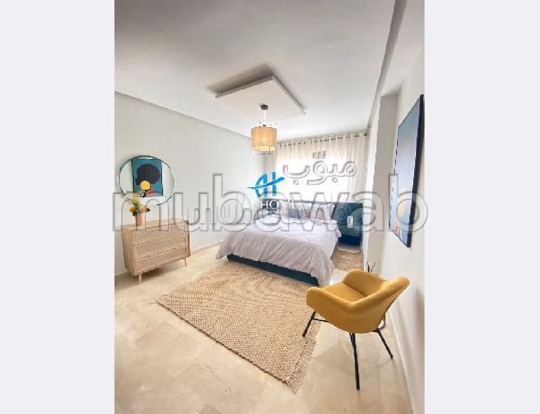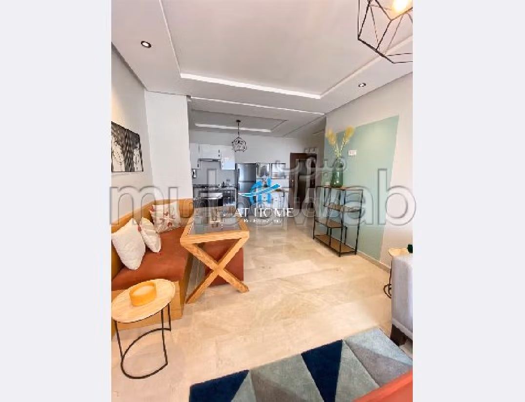 Splendide appartement à louer neuf et raffinement meublé avec beaucoup de goût,idéalement situé au cœur de tanger à proximité de tanger citymall, la gare TGV et la corniche, cet appartement coquette se dispose d’un salon moderne, une salle à manger,une cuisine américaine et une chambre lumineuse plus salle de bain.