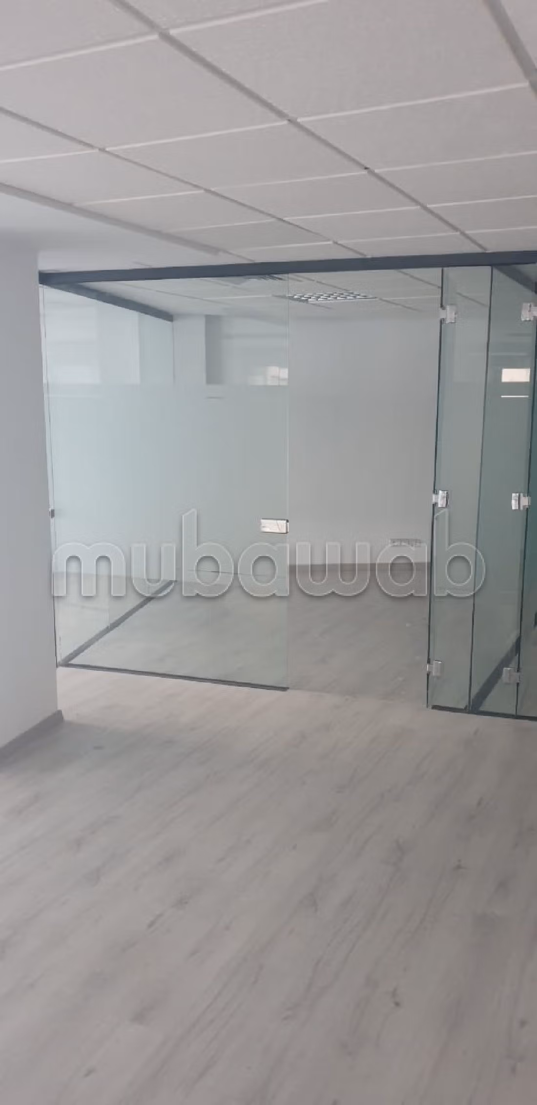 location d'un plateau de bureau haut standing situe a palmier d'une superficie de 127 m au 1er étage plateau avec cloison et agencé , parquet , installation de réseau 6 bureaux ferme open space , kitchenette et salle d'eau dans un immeuble professionnelle bien sécurisé avec ascenseur et place au parking