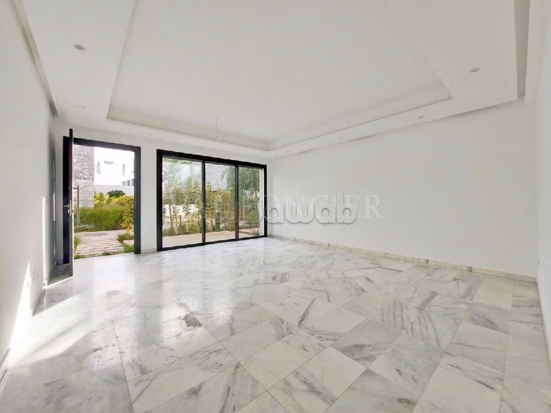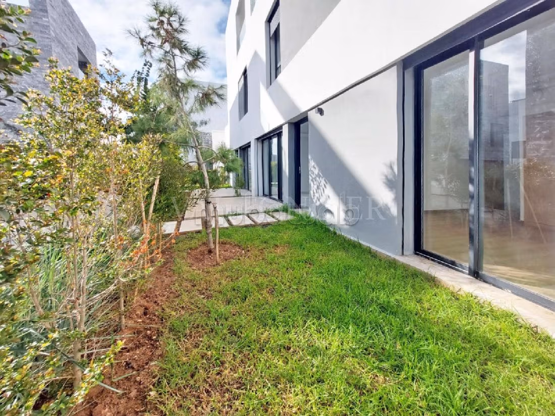 Location d'un très bel appartement situé en rez-de-jardin d'une superficie de 100m2 dans une résidence sécurisée à Bouskoura.