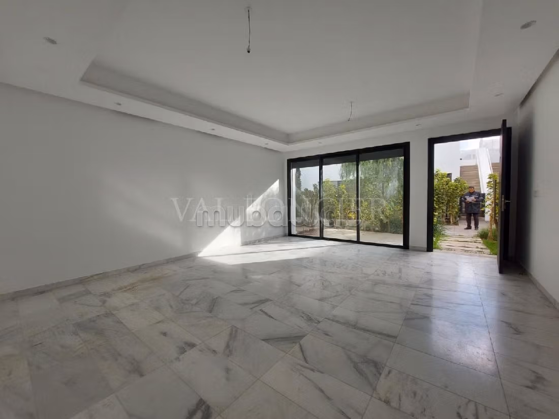 Location d'un très bel appartement rez-de-jardin bien ensoleillé d'une superficie de 100m2 située dans une résidence sécurisée à Bouskoura.