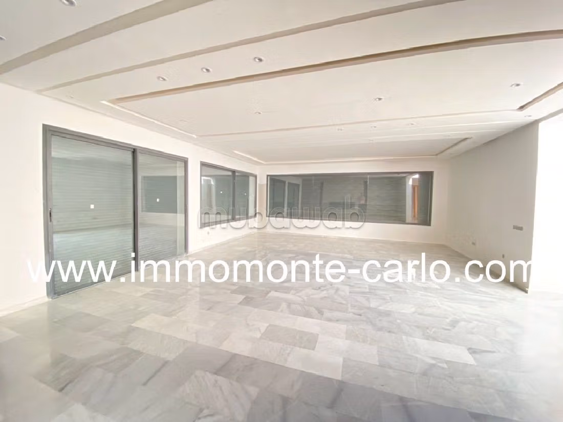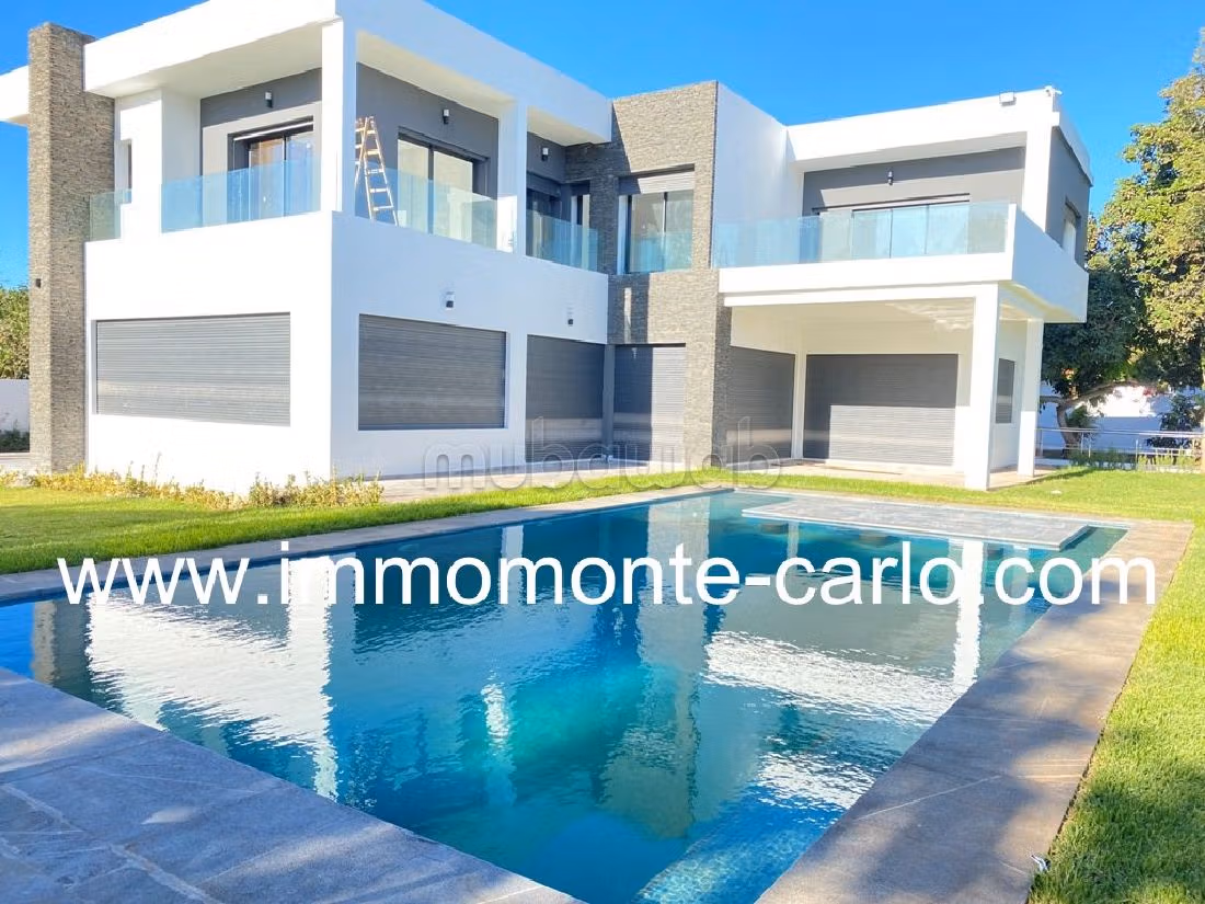 Villa neuve à louer située en plein Souissi, avec une architecture contemporaine , finitions et matériaux de luxe, Isolation thermique, double vitrage, sécurisée, dans un secteur calme et facilement accessible Dotée d'un grand parking , grand jardin avec piscine et sous-sol avec hammam composée :
