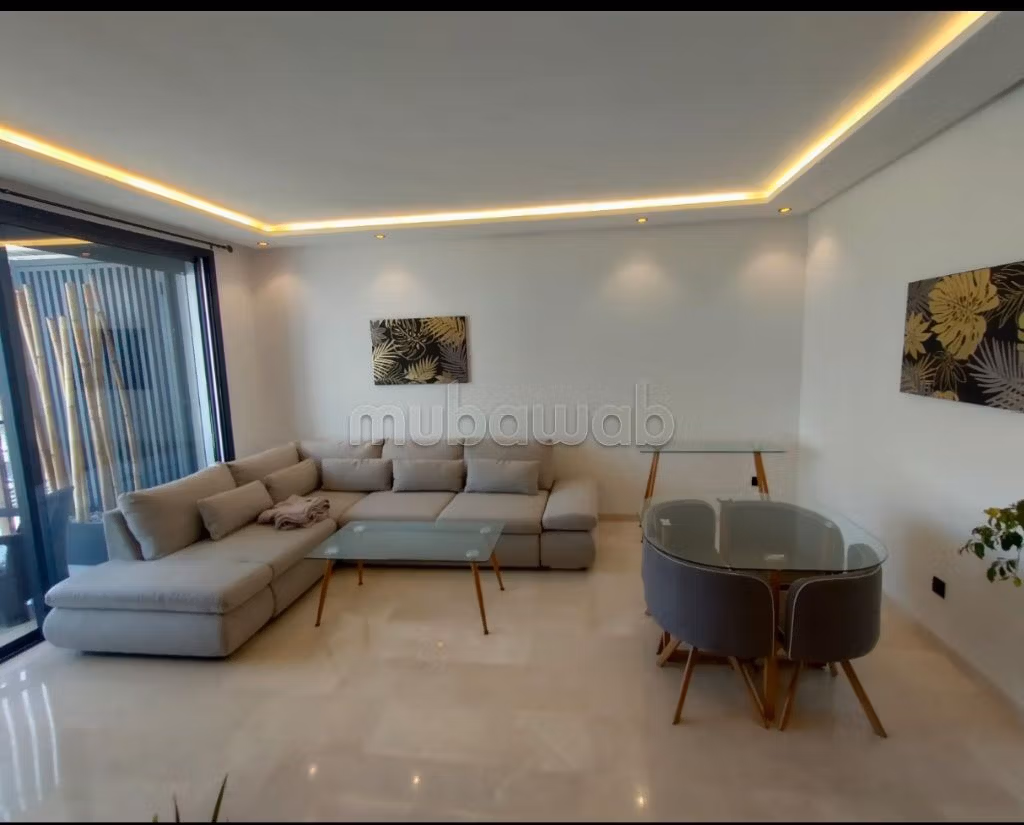 Louez l'appartement de vos rêves. Prix 13 500 DH. 2 chambres, 2 salles de bains, surface 100 m². 3 pièces lumineuses. Nouveau. Entièrement meublé.