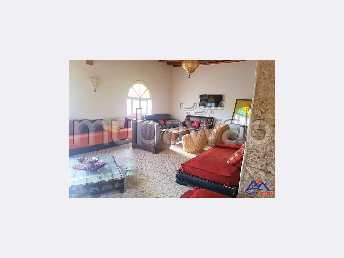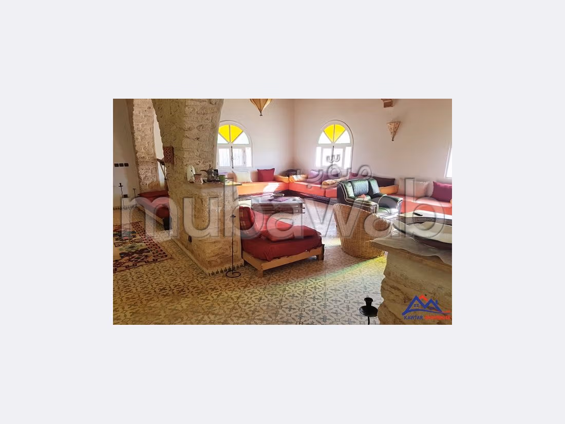 Le patio souvre sur le salon marocain de forme arrondie avec télévision et une salle à manger