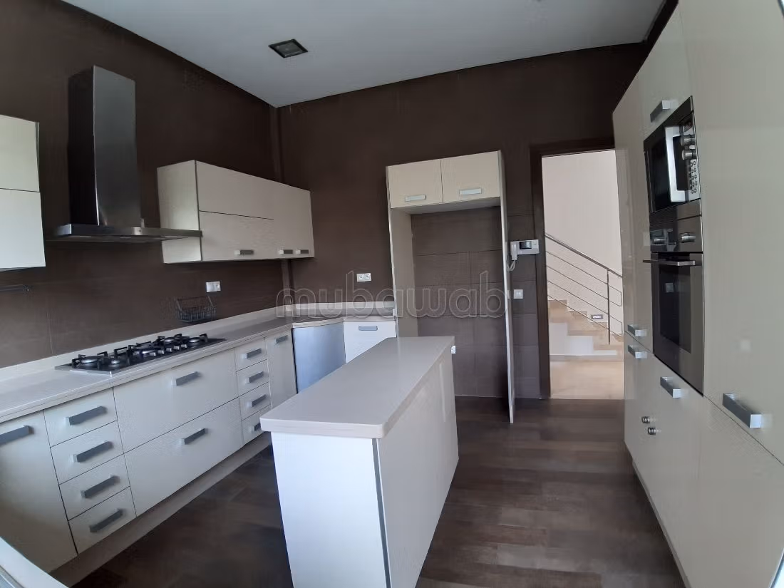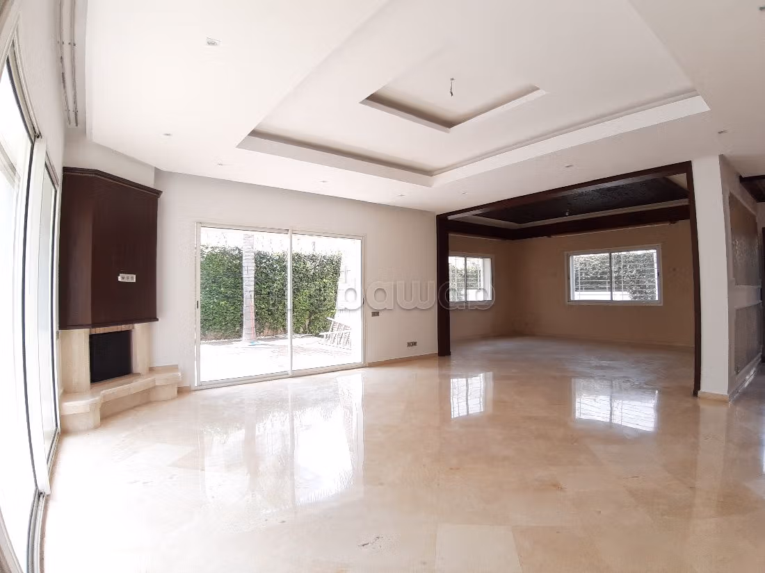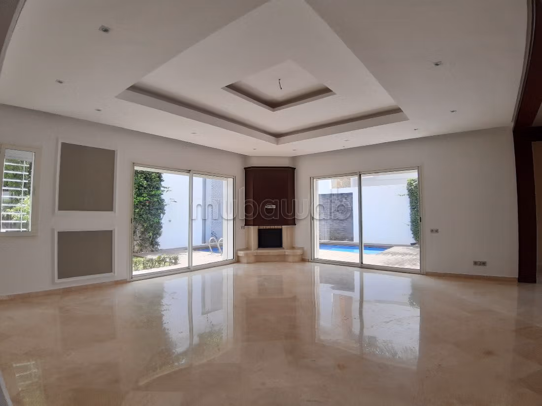 Louez une villa de rêve. Prix 30 000 DH. 4 chambres à coucher, 3 salles de bains, 270 m². 5 pièces lumineuses. Moins de 5 ans. Type de sol: Marbre. Profitez du confort de la cheminée et de la climatisation. La résidence dispose d'un service de concierge et d'une piscine.
