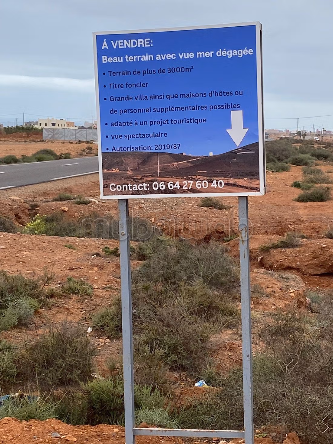 Le terrain de plus de 3000 m² est situé à quelques kilomètres au sud de Mirleft et offre une vue fantastique sur la côte de Mirleft à Sidi Ifni.