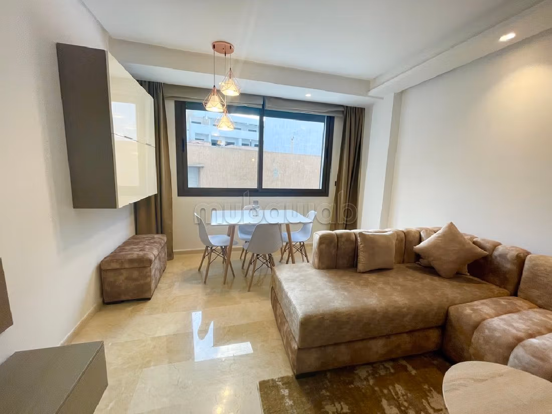 A louer long terme un studio haut de gamme et meublé de 54m2 au quartier 2 mars à proximité de Macdo 2 mars et de l'ecole la résidence dans un immeuble quasi neuf et moderne, sans vis à vis, Doté d'un système de climatisation centrale, cuisine moderne à l'américaine, carrelage de qualité dans le hall et le salon, et parquet dans la chambre à coucher, comprend :