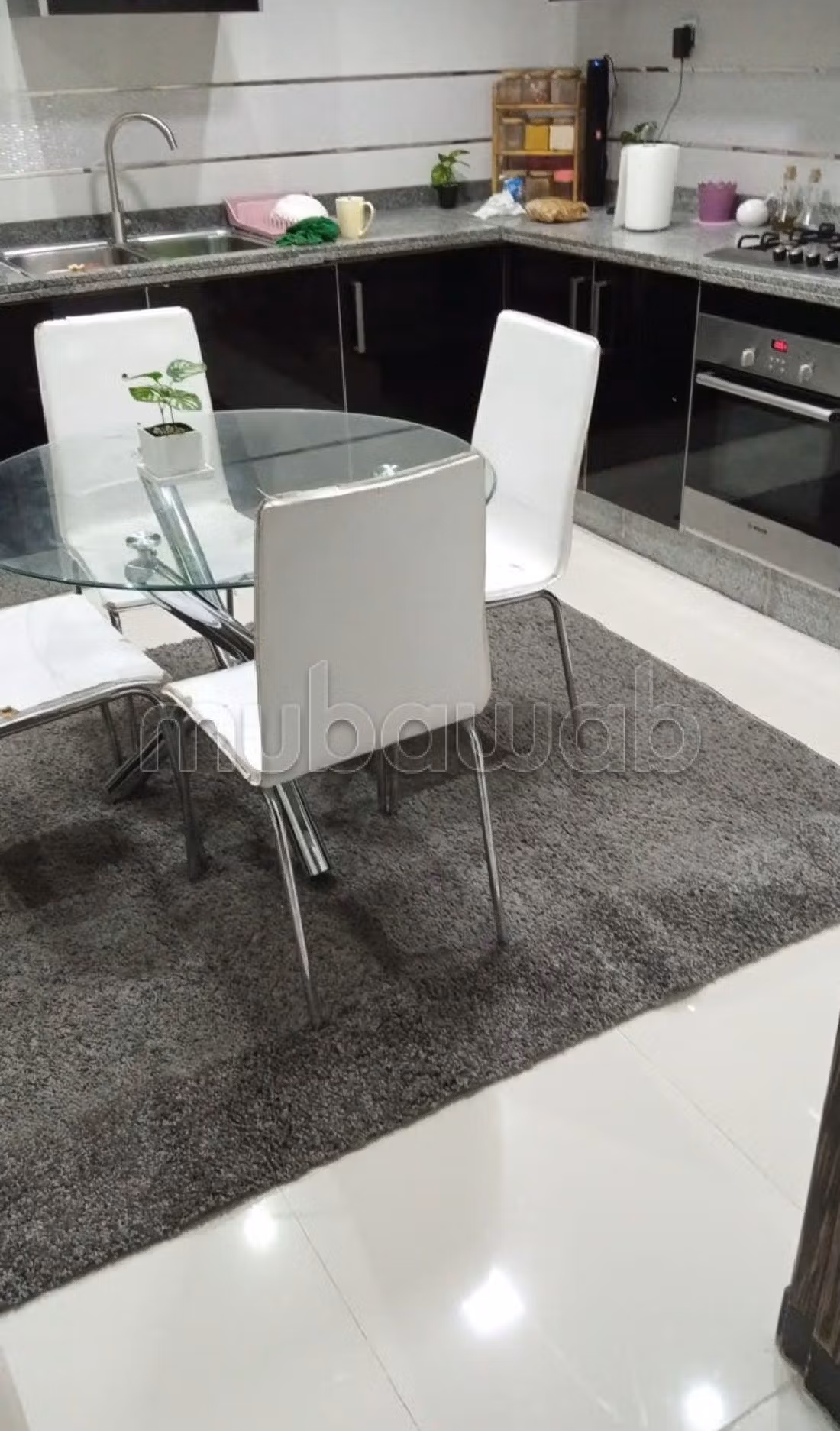 Cet appartement est proposé à la location à Bouskoura. Équipé d'une parabole. Cuisine entièrement équipée.