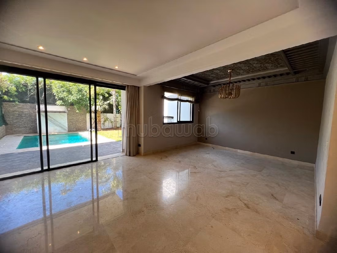 Prestations haut de gamme pour cette villa à louer. Prix 25 000 DH. 4 chambres, 3 salles de bains, surface 550 m². 5 pièces lumineuses. Moins de 5 ans. Revêtement: Marbre. Meublé.