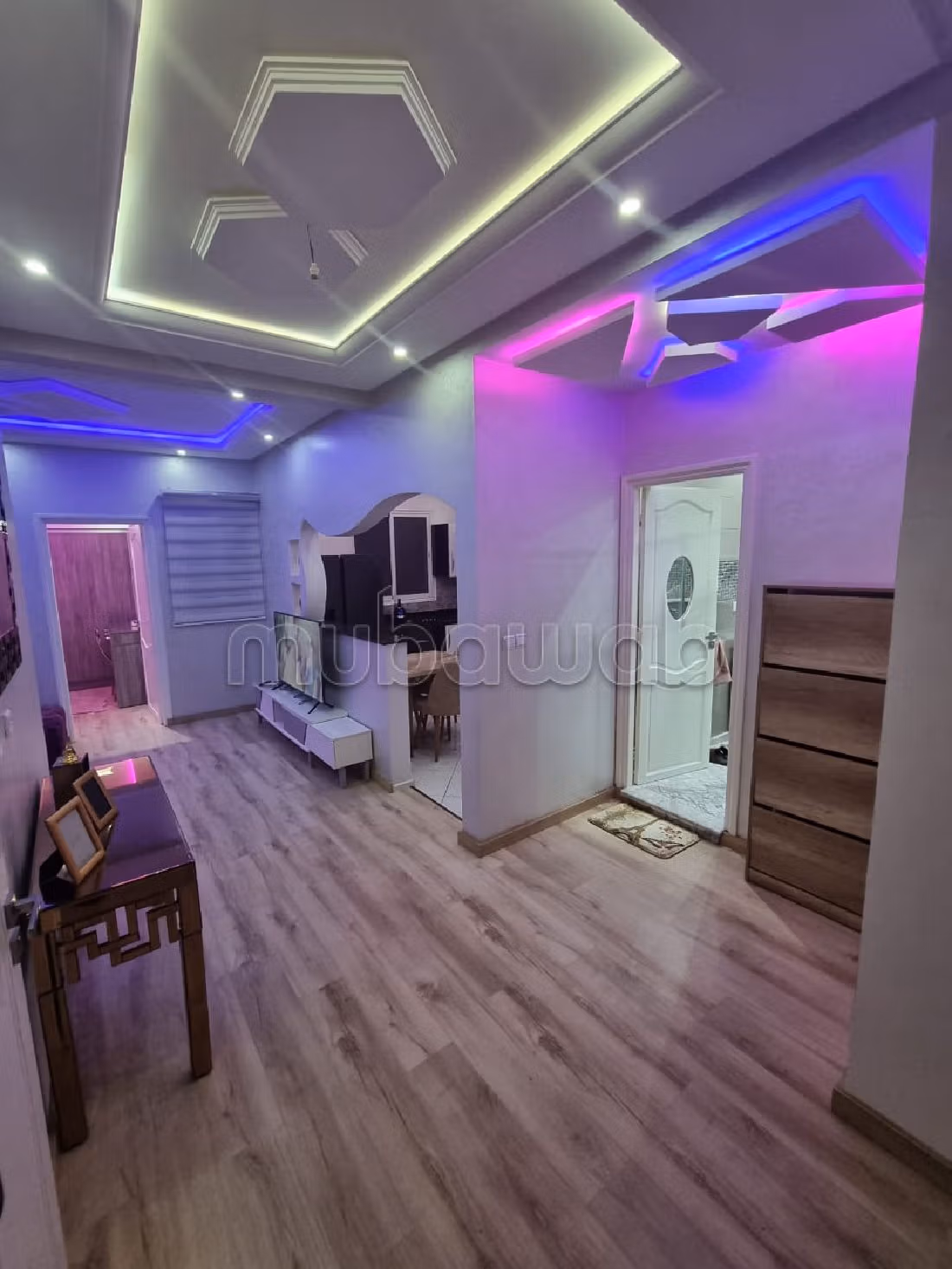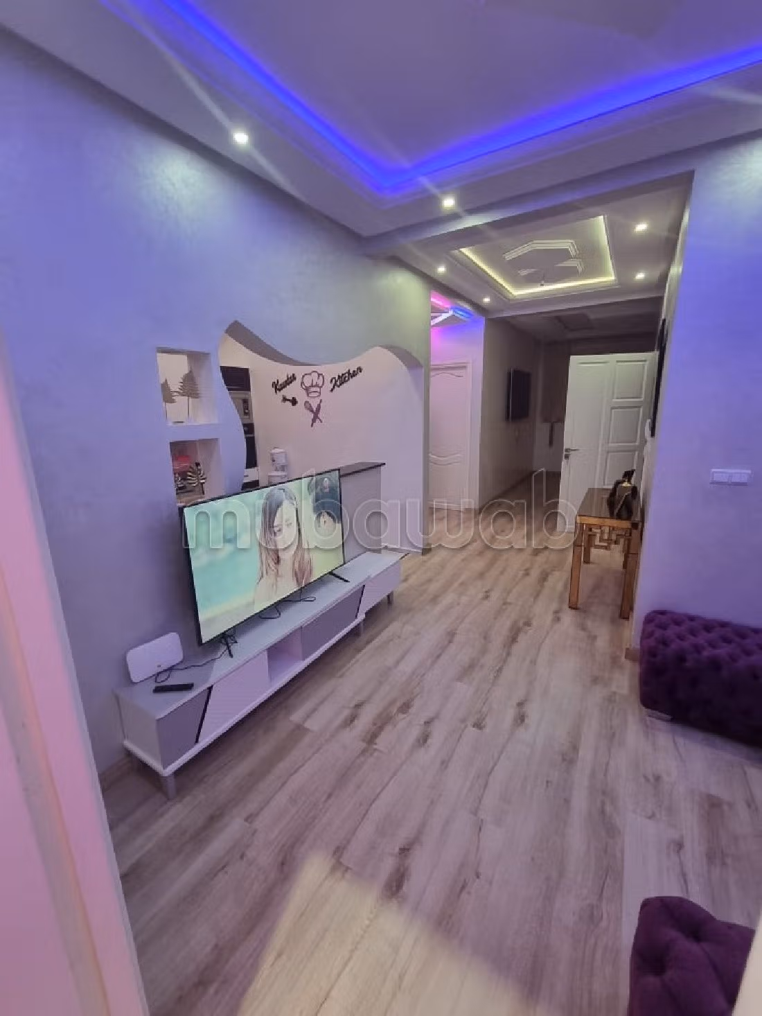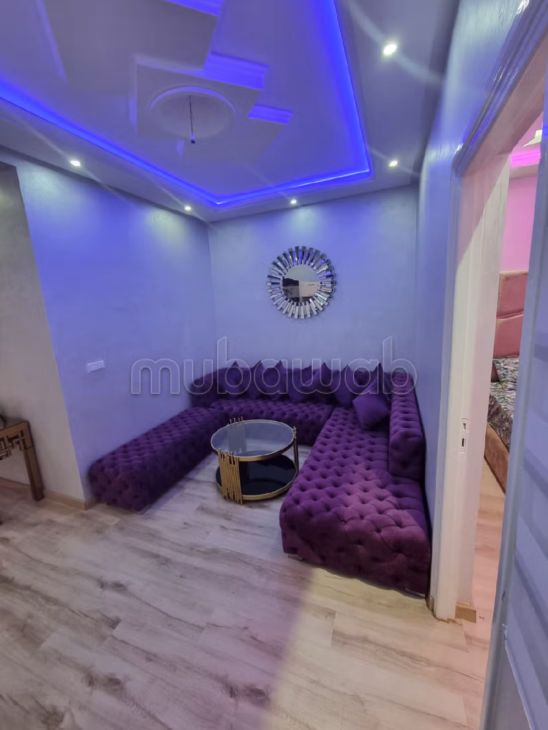 Appartement idéal pour vos vacances. Prix 500 DH. 2 pièces, 2 salles de bains privatives, 72 m². 2 chambres à coucher. 2ème étage. Bon état. Type de sol: Parquet. Nombres de nuits minimum 2. Confort et tradition avec un beau salon marocain. Le bien dispose également d'une antenne parabolique et d'une porte blindée. La résidence est sécurisée.