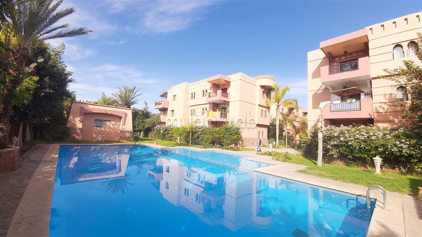 CET APPARTEMENT COSY DE 161 M2 couverts EST SITUE EN VILLE DE MARRAKECH - ROUTE DE FES ( A LA LIMITE DU CIRCUIT DE LA PALMERAIE ) - DANS UNE RESIDENCE FAMILIALE, SECURISEE ET DE HAUT STANDING. AVEC BELLE PISCINE COMMUNE.