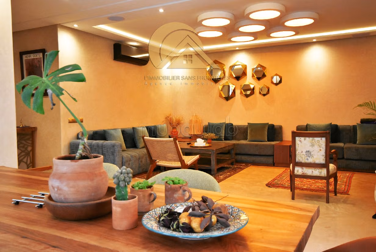Salon marocain - salon européen - terrasse -climatisation centralisée - baie vitrée