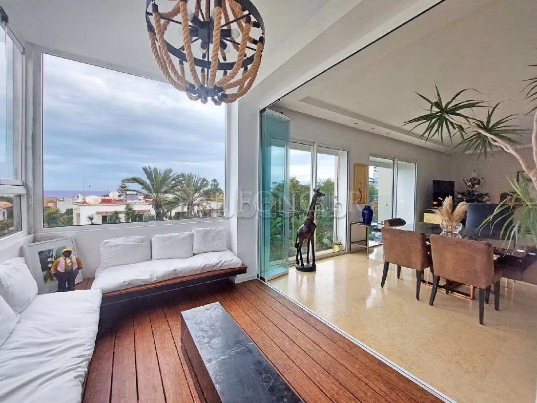 Val Foncier propose à la location un superbe appartement d'une superficie de 180m2 situé dans une belle résidence fermée avec jardin à Ain Diab.