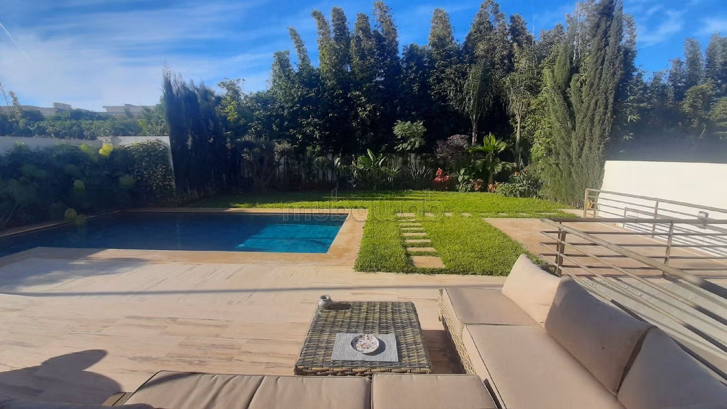 Programmez dès maintenant votre visite pour cette villa d'exception à Bouskoura. Confort absolu avec le chauffage central. En prime, une magnifique vue sur les montagnes. Cuisine entièrement équipée. Confortable salon européen.