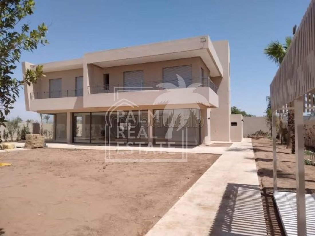 MAGNIFIQUE Villa d'architecte récente de1200 m² sur 500 m² de terrain au sein du complexe calme et securisee . Vendue équipée et meublée, elle dispose d'un grand espace séjour - salle à manger, de trois chambres avec chacune sa salle de bain dont une à l'étage avec vue époustouflante sur l'Atlas, d'une cuisine très spacieuse et un espace aménagé au sous-sol comprenant deux autres pièces où, selon vos envies, bureau, dépendance pour le personnel, salle de jeux ou encore espace de lecture pourront prendre place. Elle possède en outre un agréable espace vert alliant jardin d'agrément, terrasse, piscine et carrés aromatiques.