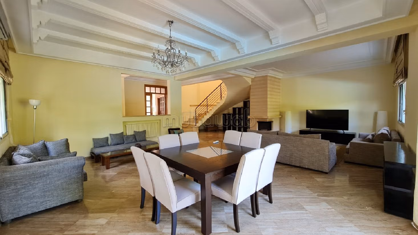 Cette luxueuse maison est à louer à Ain Diab. Profitez du confort de la cheminée et de la climatisation. La résidence dispose d'un service de concierge. Vous bénéficierez d'une terrasse et d'un jardin.