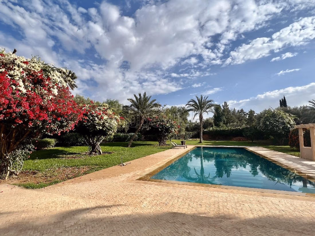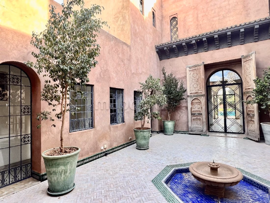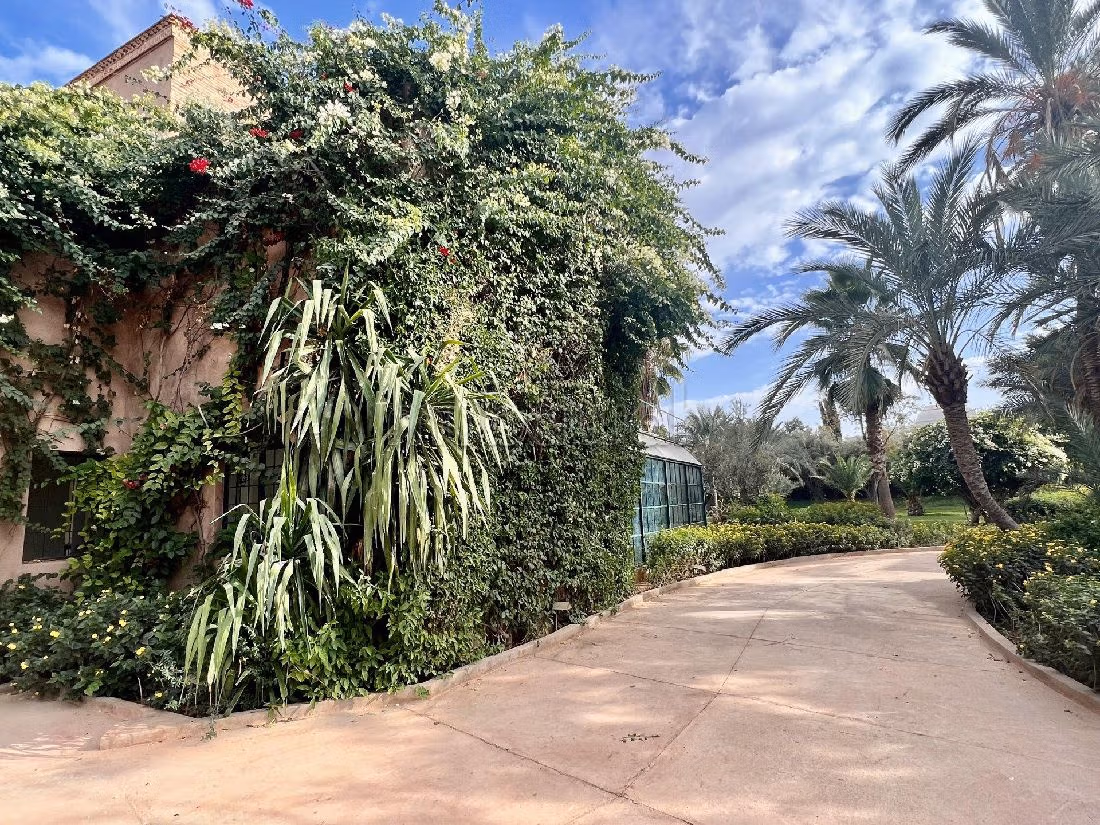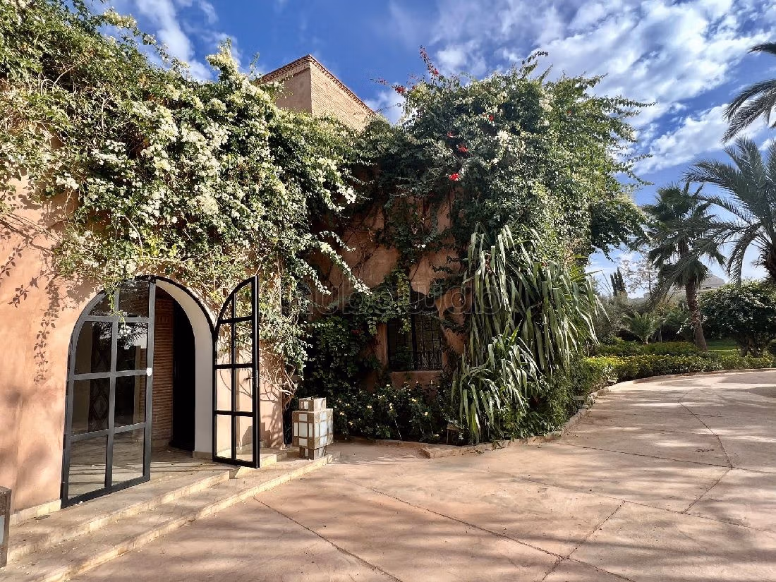 Harmonieux mélange d'une Villa et d'un Riad VANEAU MAROC vous propose à la vente une superbe propriété mariant le charme et l'authenticité des Riads Marocains et la modernité d'une Villa aux portes de la ville. située à 5 min du Royal Golf et d'Amelkis, sur un terrain de 7000m2, ce Riad exceptionnel est un petit paradis d'architecture. 1100m2 réparti sur deux niveaux comprenant 9 suites au total avec salles de bains privatives et terrasses. Beaux volumes, piscine intérieure et éxterieure, salle de cinéma, hammam traditionnel et salle de massage, toute la propriété a été pensée pour allier confort dépaysement et luxe.