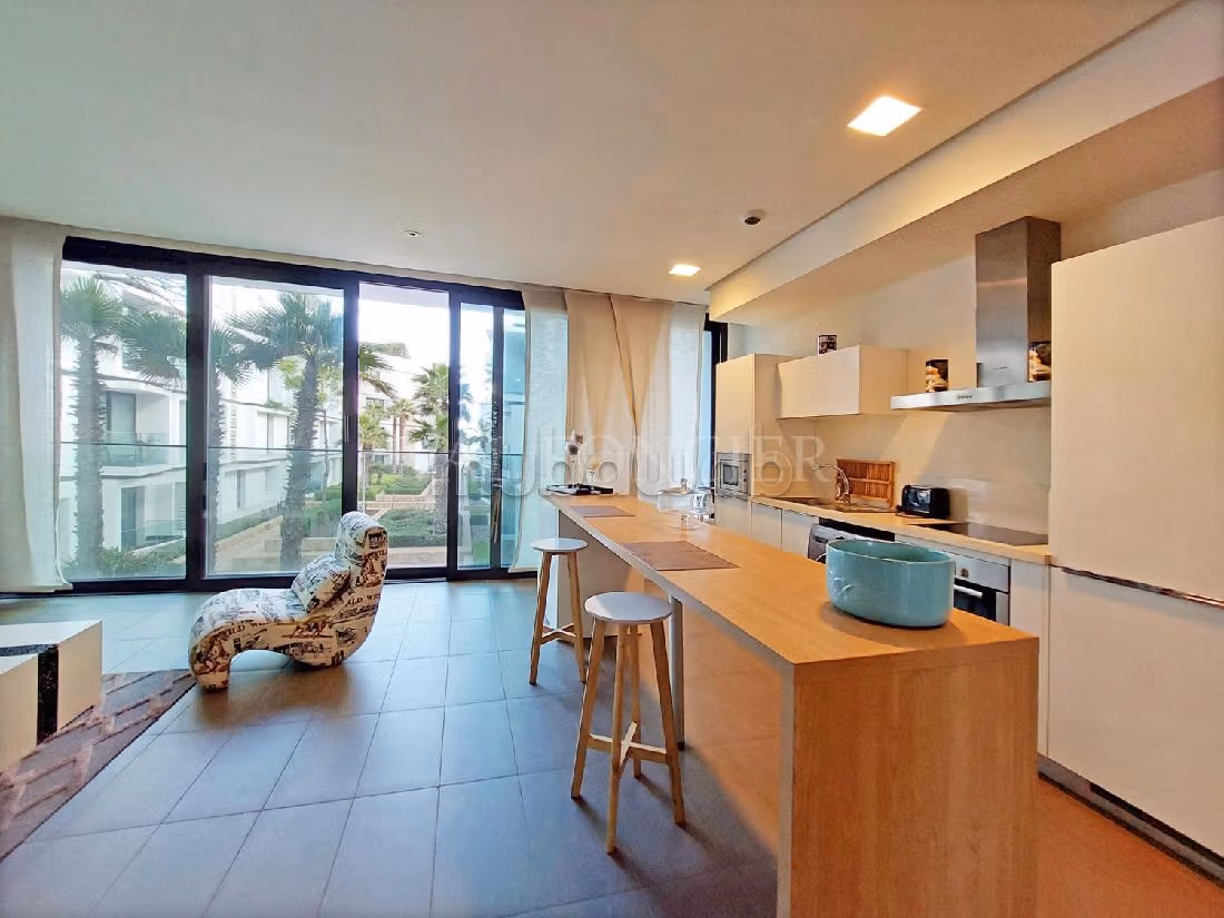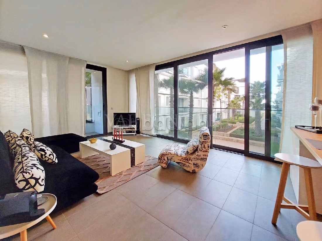Exceptionnel appartement meublé dans le prestigieux projet d'Anfaplace sur la corniche de Casablanca pied dans l'eau, proche de toutes commodités avec vue mer à partir du salon.