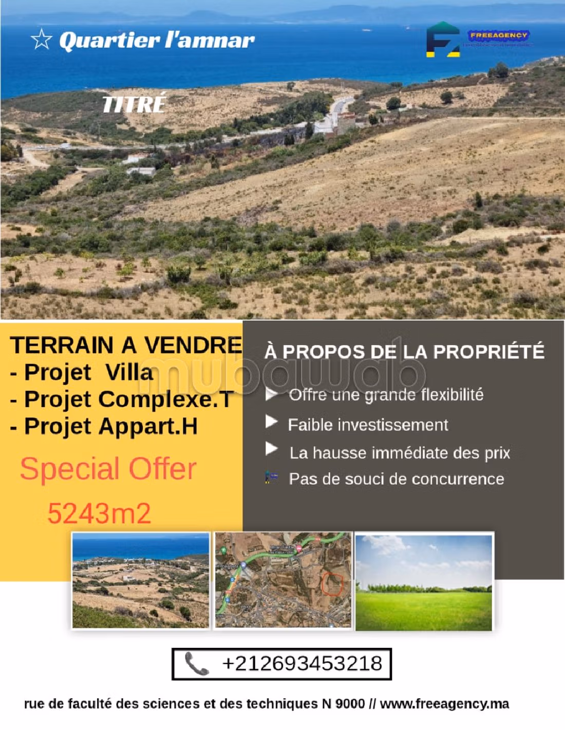 Une superficie de 5243 m² avec un prix de 4.500 DH/m².