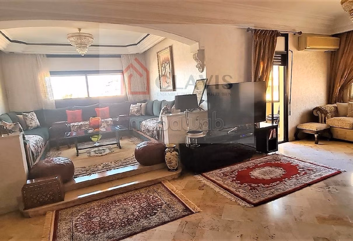 A vendre un appartement de 235 m habitable au 5me et dernier tage (seul l'tage) dans un immeuble faisant angle traversant orient Nord/est/sud et avec trs peu de vis--vis construit avec de beaux matriaux marbre et bois massif. Description : -Une rception trs spacieuse de plus de 70m sur deux faades avec deux terrasses ; -vestiaire invits ; -suite parentale avec placards avec sdb avec douche et balcon, -trois chambres coucher ensoleilles (dont une donne sur le salon) avec Sdb avec douche et une trs grande cuisine .Une 2me porte permet d'acceder directement au cot cuisine en dehors de la porte secours. -Place au garage et sur la terrasse Appartement calme dans une residence bien entretenue avec un excellent voisinage proche des hopitaux ,de la facult de medecine et de toutes les commodits