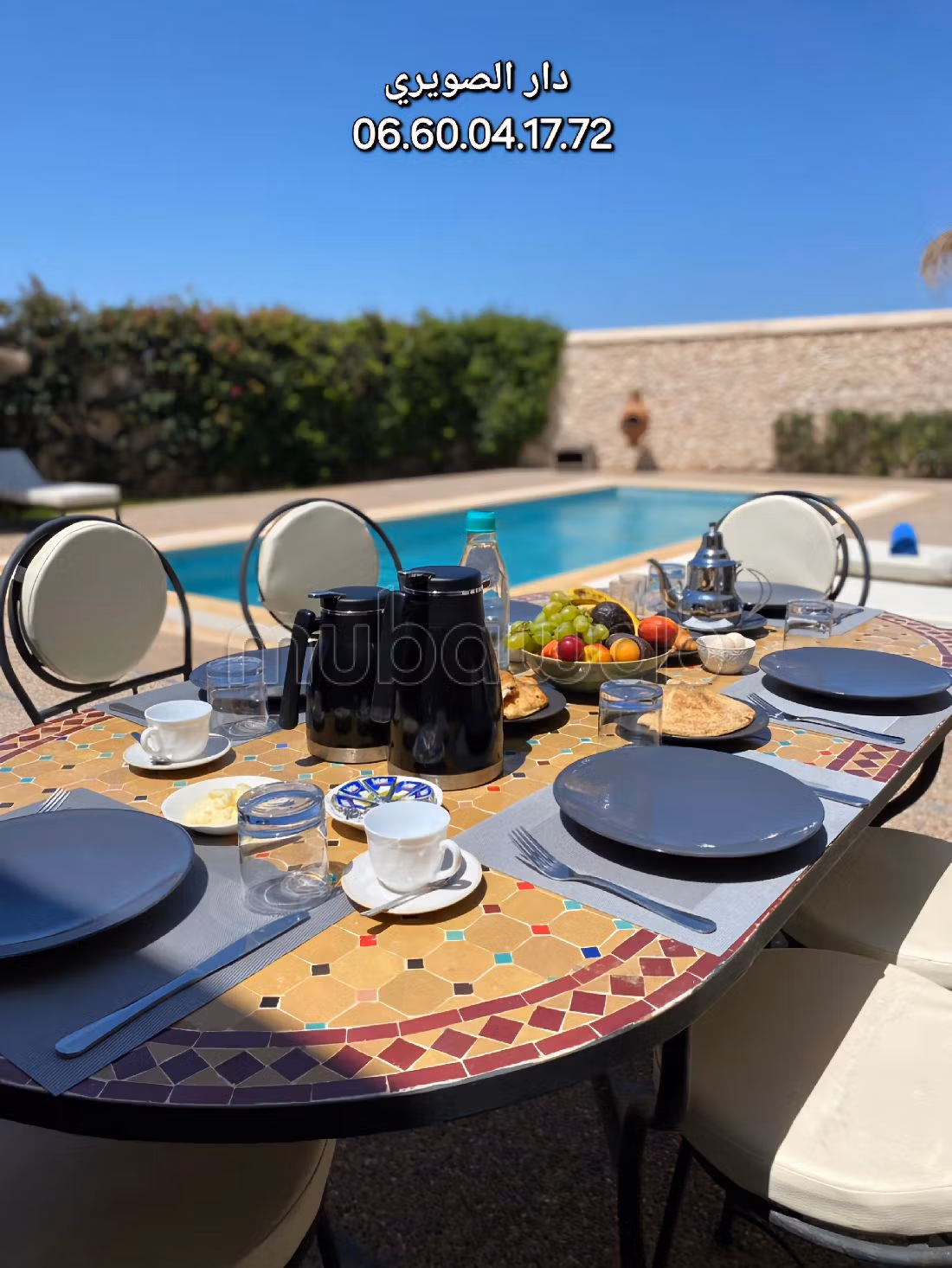 Villa d'exception à la location pour vos vacances. Prix 1 500 DH. 2 pièces, 2 salles de bains privatives, 2000 m². 3 chambres à coucher. Nouveau. Revêtement: Parquet. Nombres de nuits minimum 3. Profitez du confort de la cheminée et de la climatisation. La résidence dispose d'un service de concierge et d'une piscine.