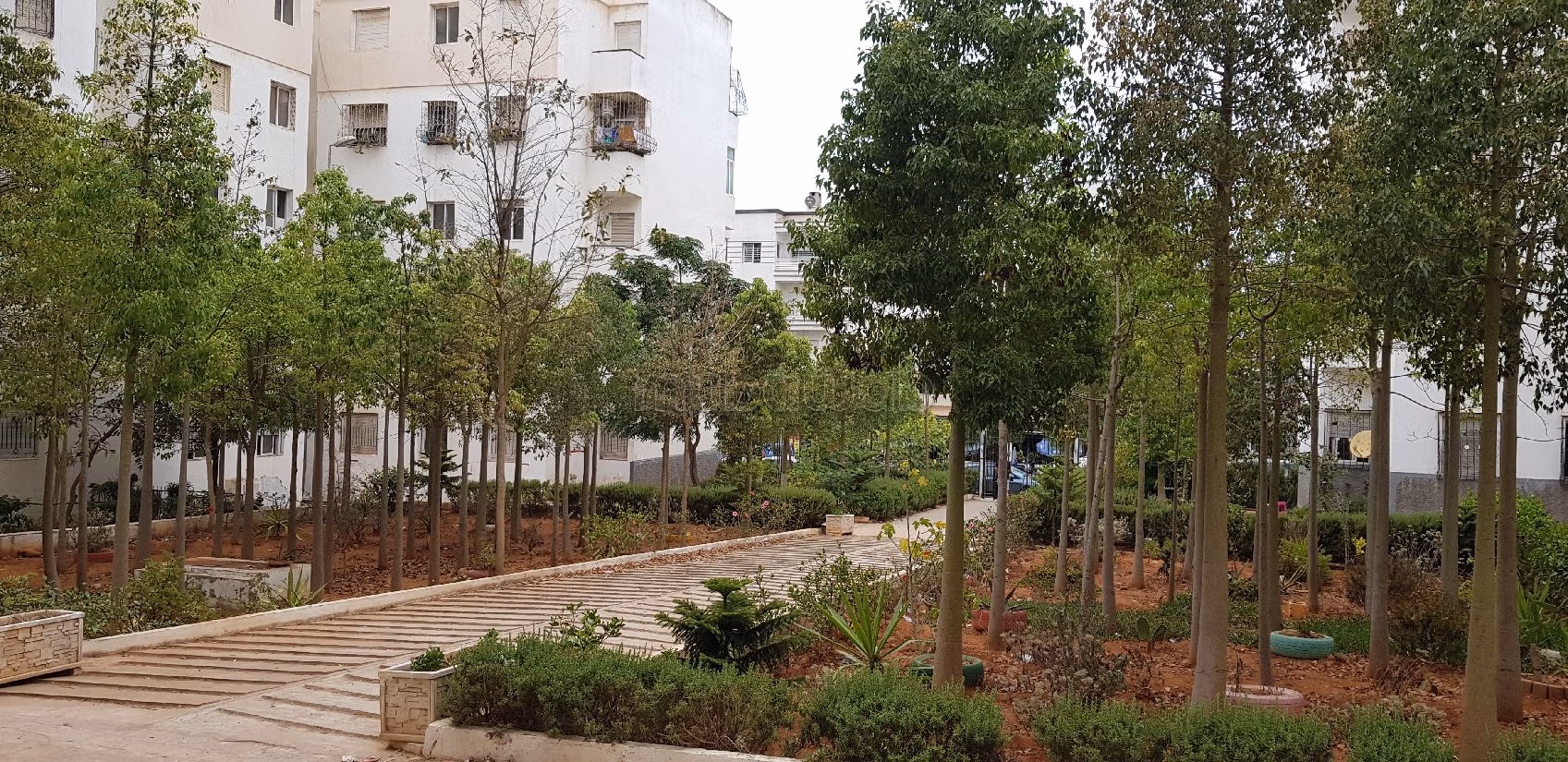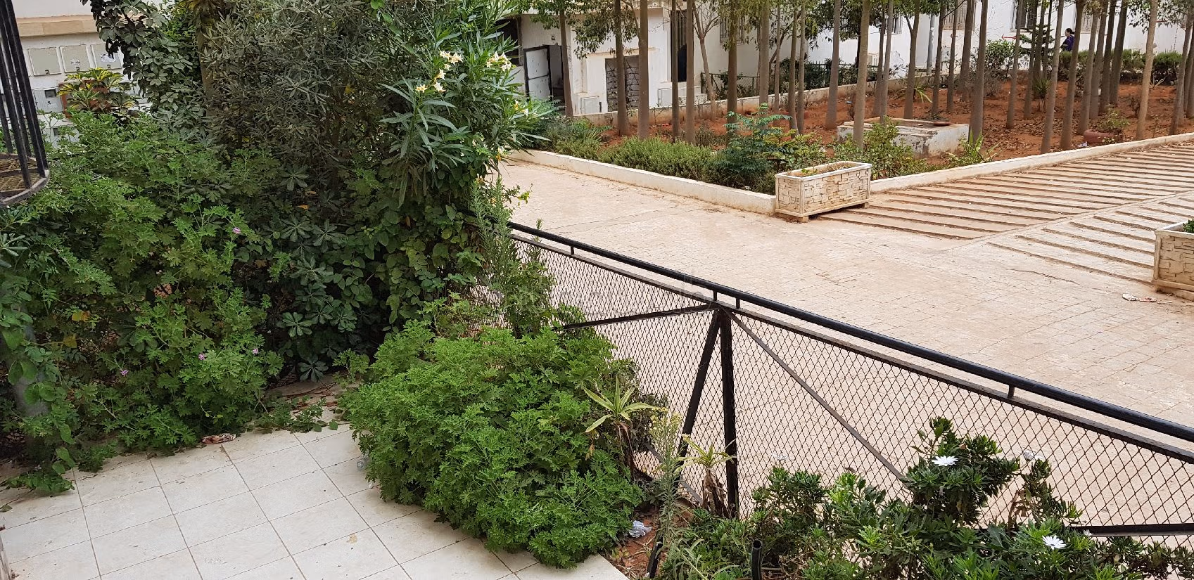 L'appartement se situe au rez-de-chaussée d'une résidence fermée et avec sécurité. La résidence est calme et arborée partout (très agréable à vivre surtout pendant l'été si vous cherchez une résidence au Maroc).