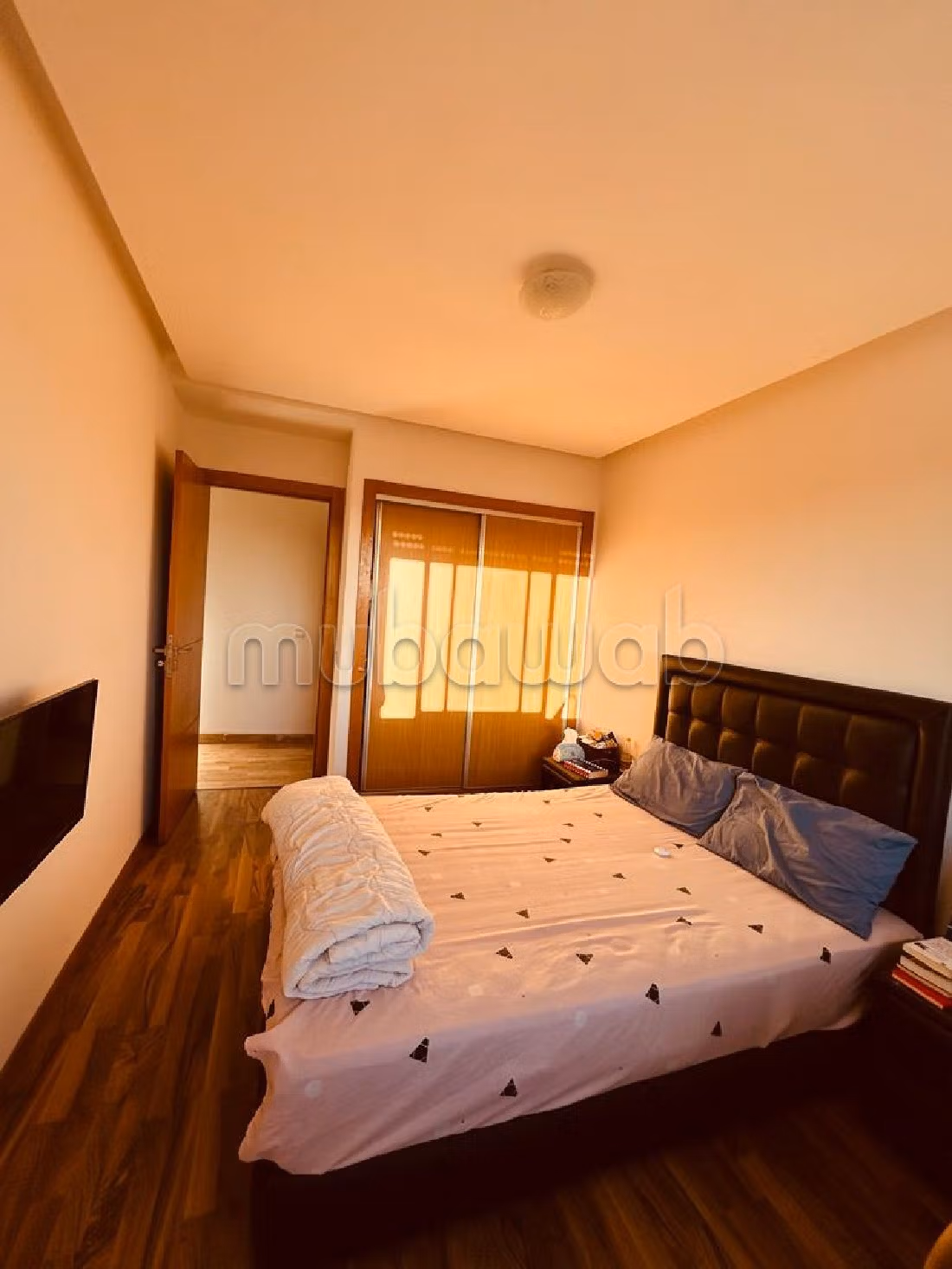 Je mets en vente un superbe appartement très ensoleillé de 81m2 surface habitable 14m2 place au Garage Titrée - la surface totale est de 95 m2 au prix de 990 000.00 Dhs. L’appartement est bien ensoleillé à 500 mètres de la plage - au 2 étage sans vis à vis l'appartement comprend : un salon (marbre au sol) avec un grand balcon , un séjour, 2 chambres avec armoires encastrées (parquet au sol) , 1 sdb , une grande cuisine avec buanderie , 1 grande terrasse.