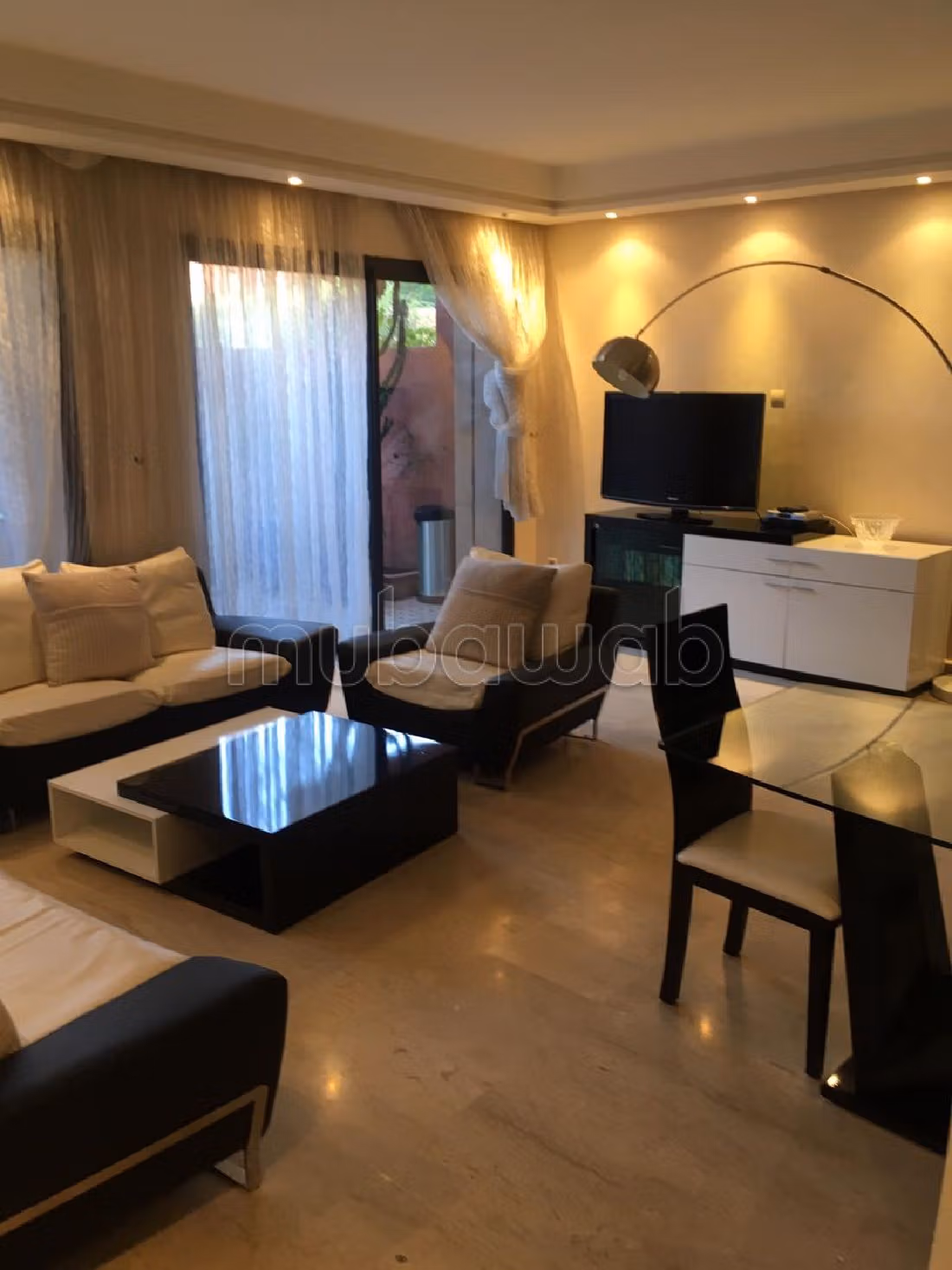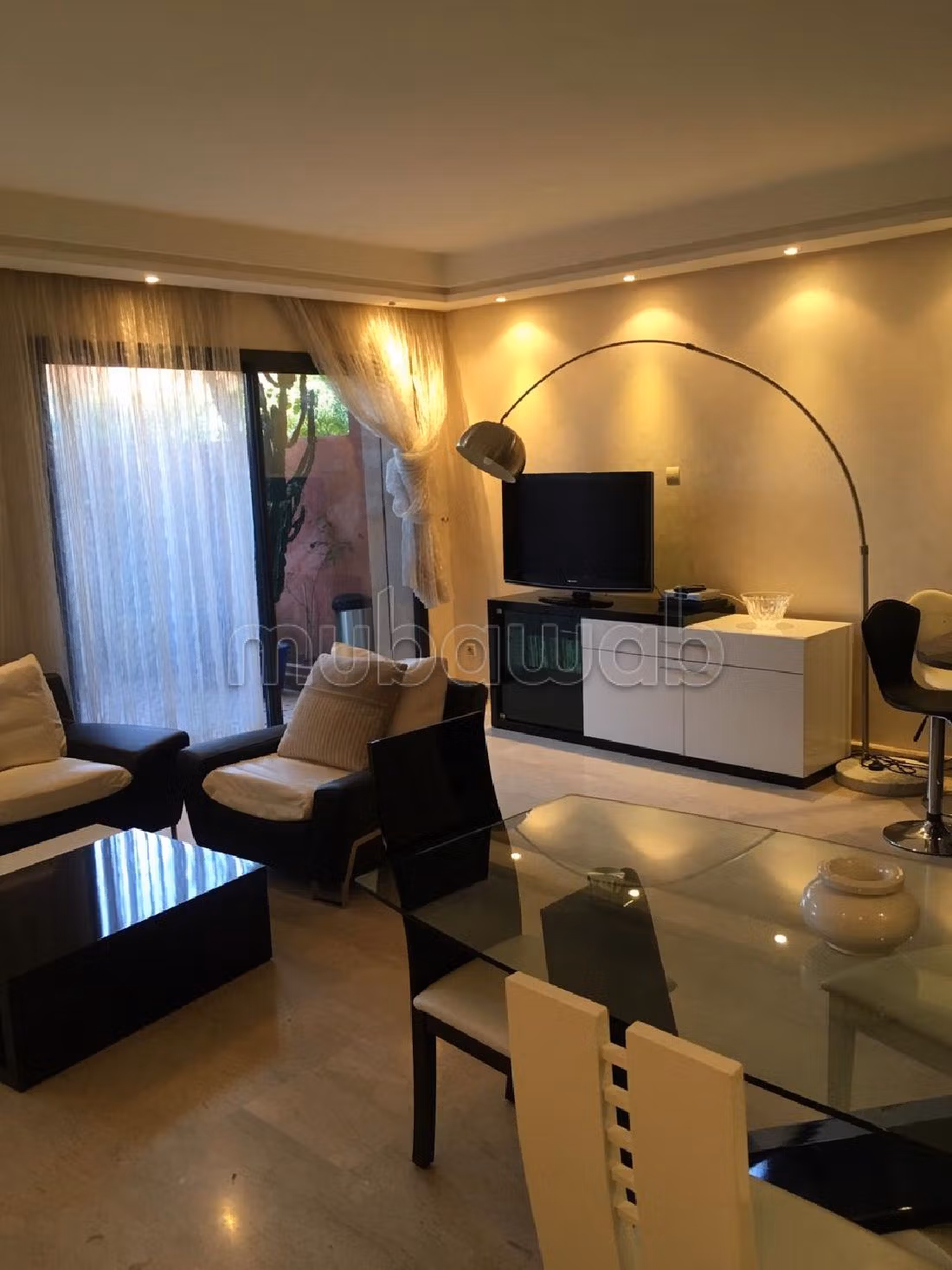 Appartement idéal à la vente. Prix 2 300 000 DH. 2 pièces, 1 salle de bains, 103 m². 1 chambre. Moins de 10 ans. Type de sol: Marbre. Bien meublé.