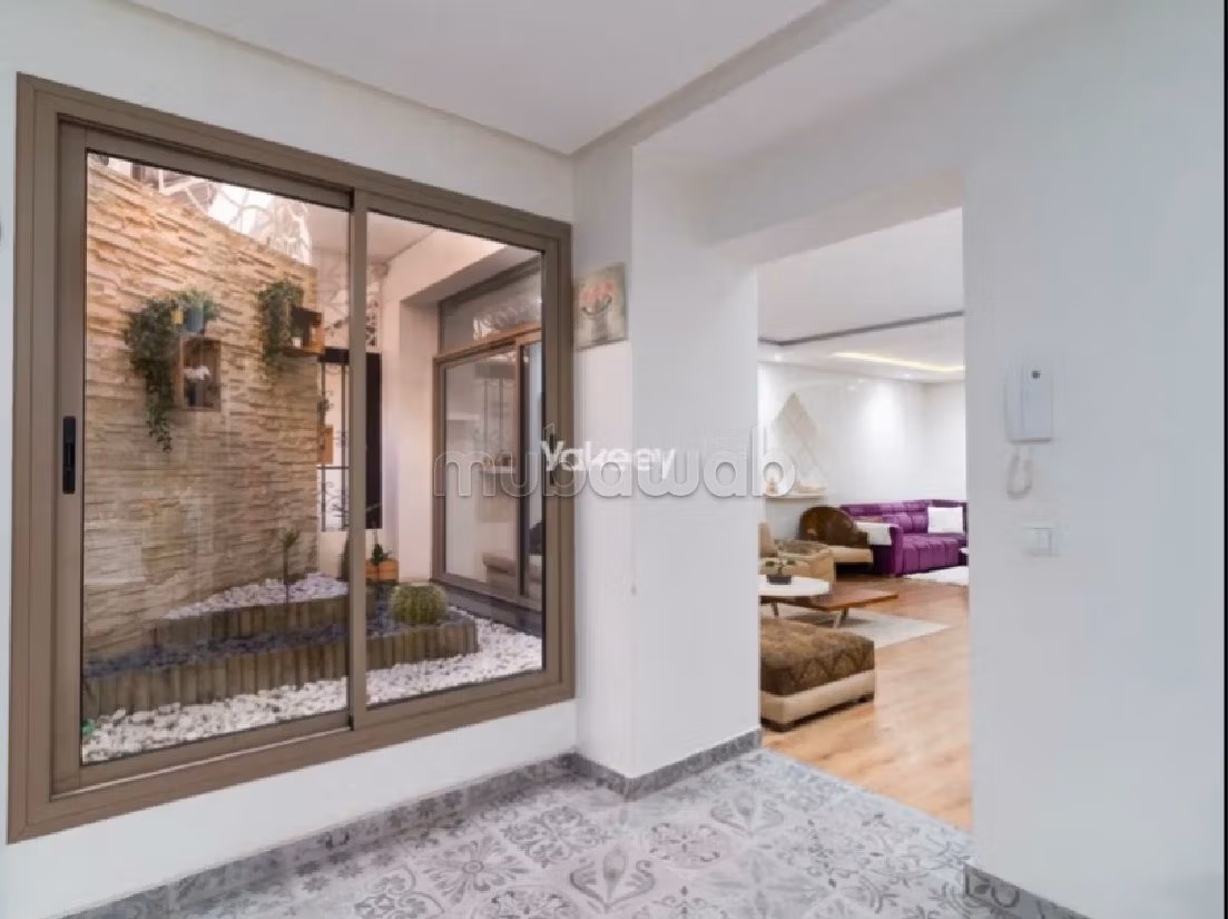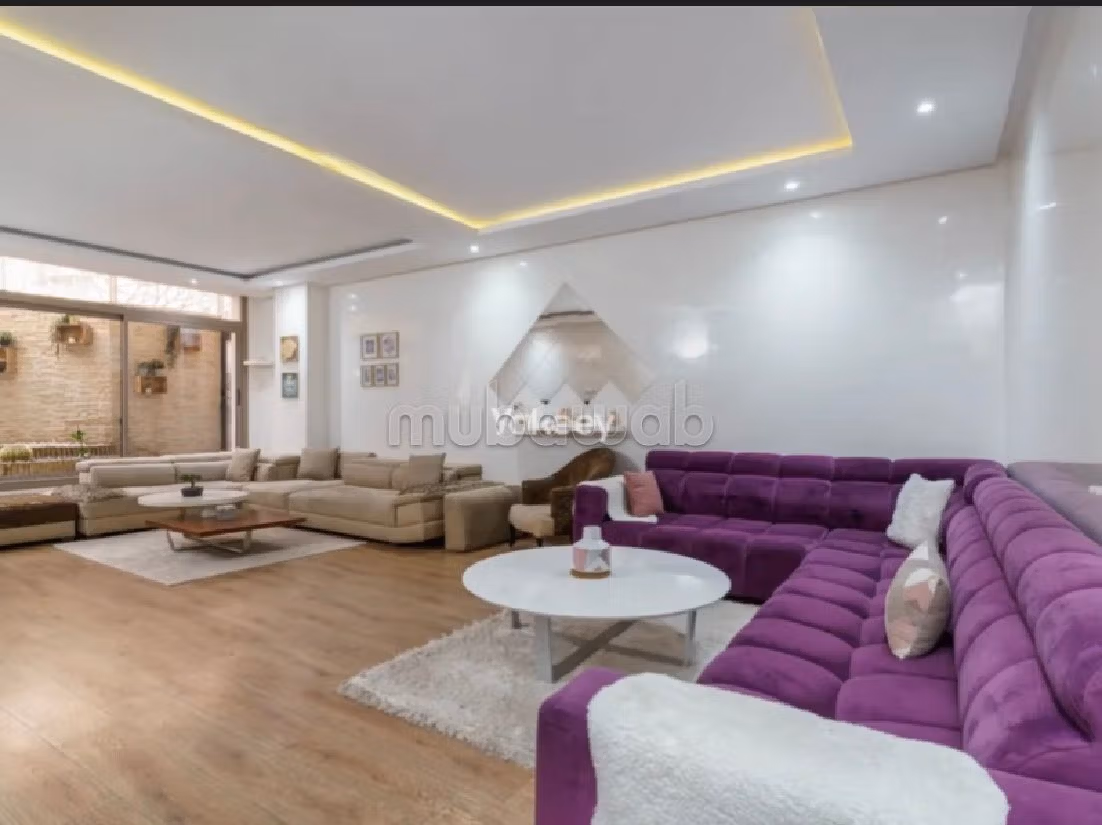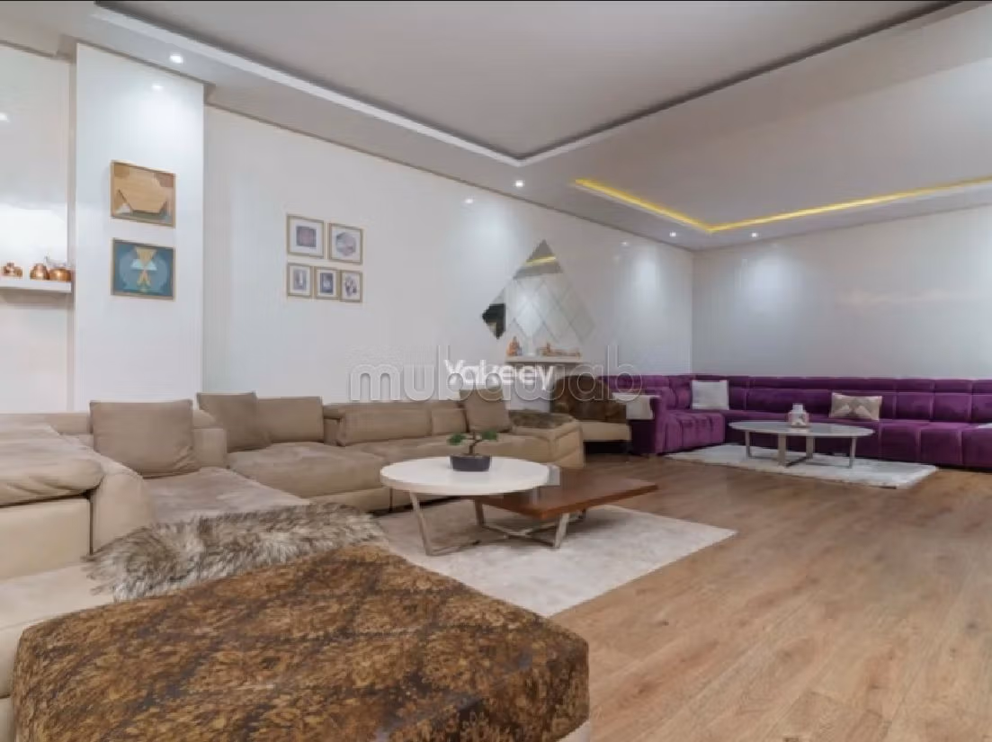 Découvrez cet appartement à vendre. Prix 1 400 000 DH. 3 chambres, 2 salles de bains, 129 m². 8 pièces lumineuses. 1er étage. Moins de 20 ans. Type de sol: Parquet. Entièrement meublé.