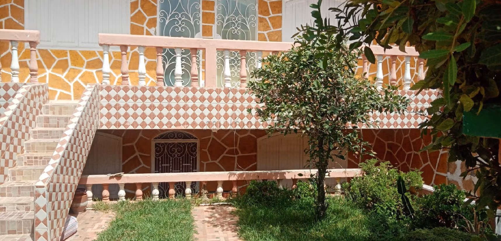 En face de la forêt & à 2 pas de la plage de Tamaris à Dar Bouazza il y a une jolie villa rustique non meublée de 2 niveaux & avec un grand jardin à louer. A l'étage il y a 4 chambres, 1 avec vaste terrasse & 2 autres avec balcons, 1 salle de bain. Au rez de chaussée il y a une cuisine ouverte sur un salon avec cheminée avec accès direct au joli & vaste jardin, 1 chambre, 1 salle de bain & 1 débarras. Cette jolie maison rustique se loue pour une longue durée à 9000DHS.