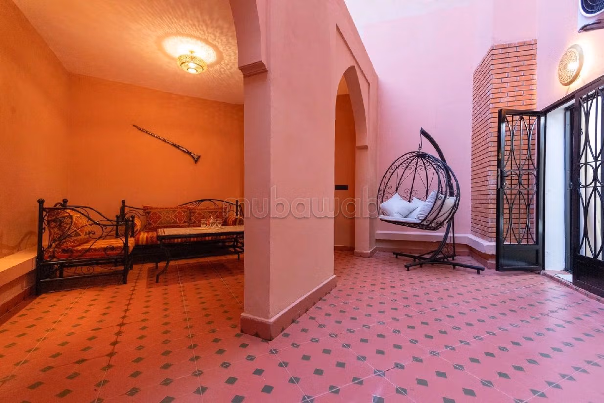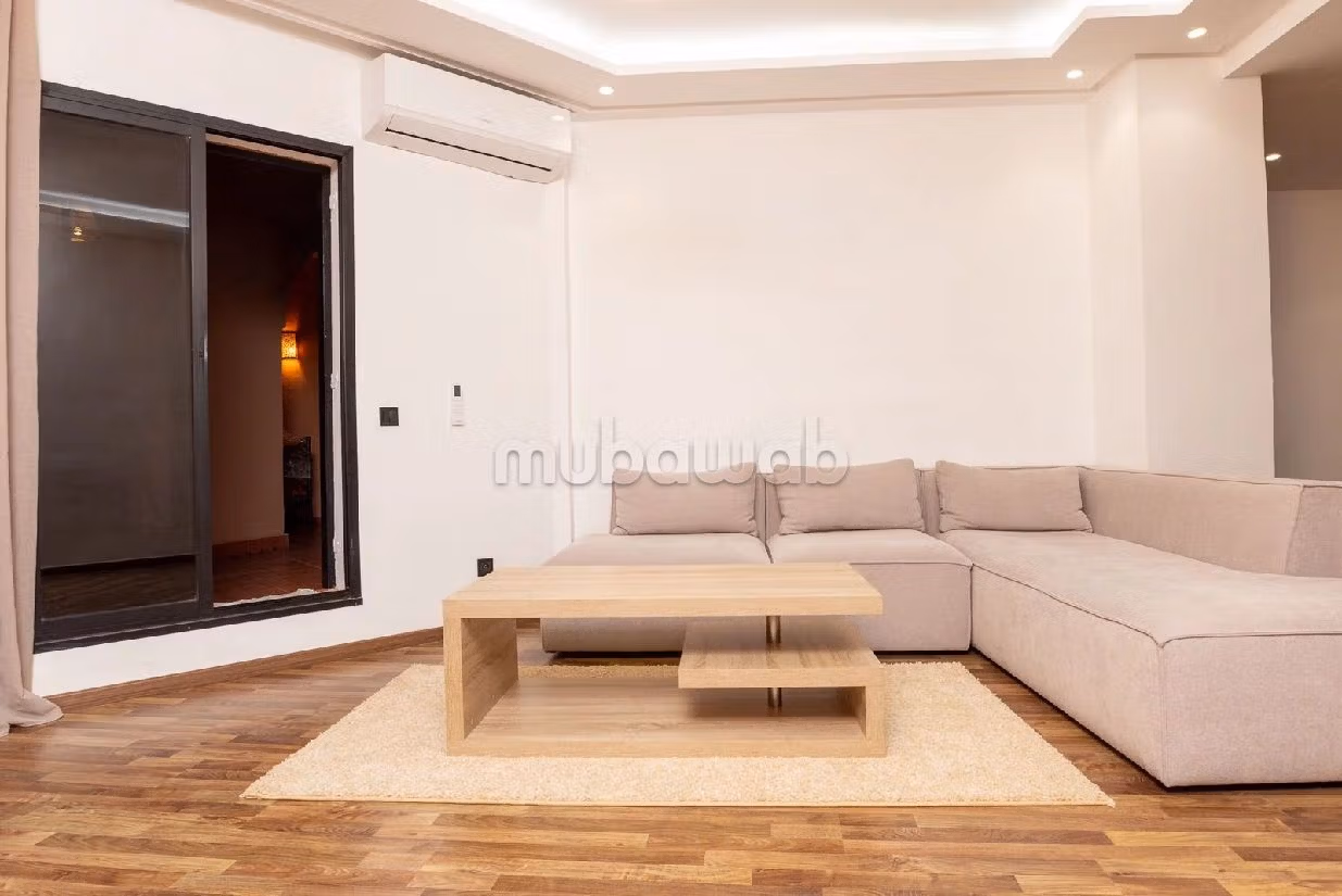Chestertons Maroc vous propose cet appartement, idéalement situé en plein centre-ville de Guéliz sur l'Avenue Mohammed 5, est une véritable perle. Au premier étage, il propose deux chambres confortables, un salon spacieux avec une cuisine américaine bien équipée (appareils Artur Martin et Samsung sous garantie), et une grande terrasse aménagée avec salon marocain et balançoire. Trois climatiseurs Bosch assurent le confort, tandis que les salles de bain offrent des toilettes suspendues et des douches italiennes. Le design moderne avec une touche traditionnelle, ainsi que des lits en mousse pour un sommeil de qualité, font de cet appartement un choix exceptionnel pour votre séjour à Marrakech.