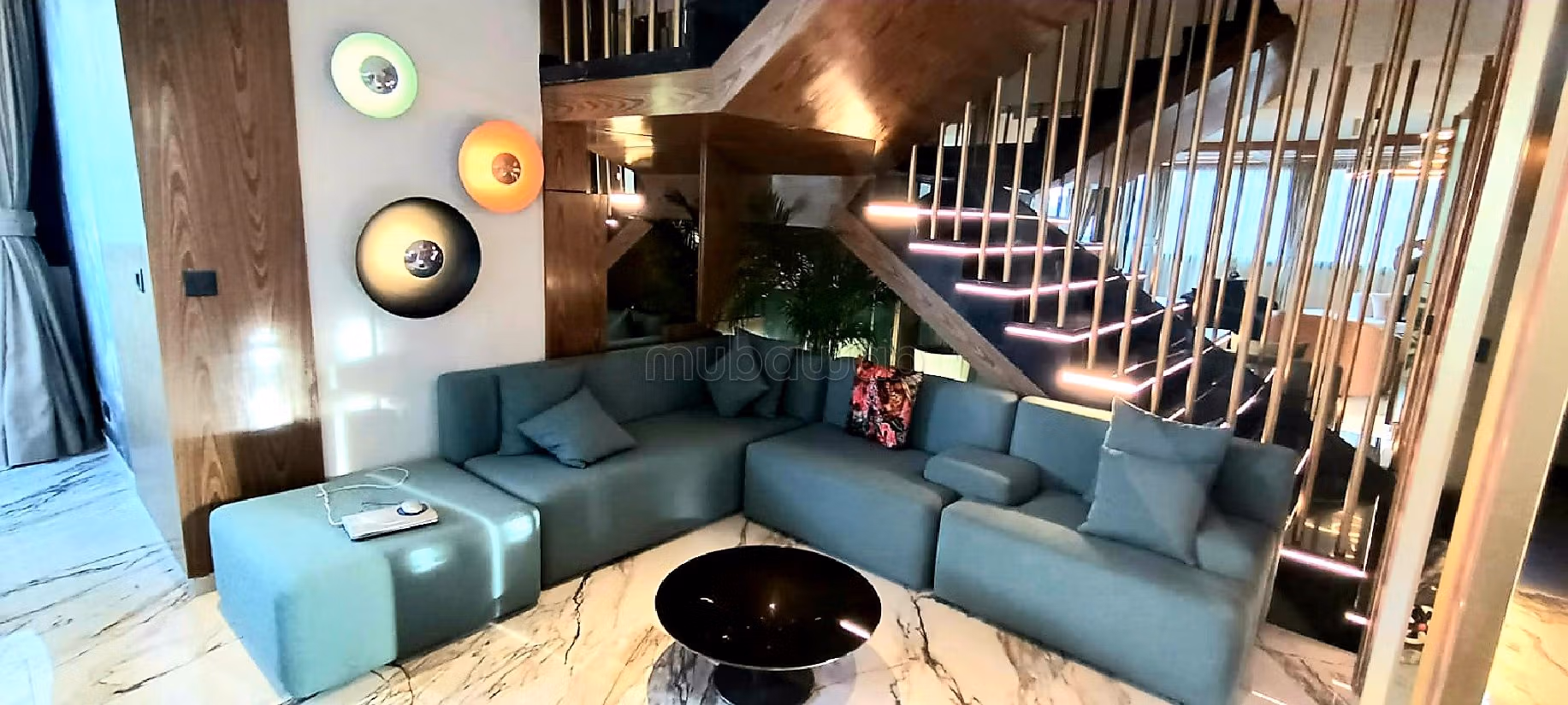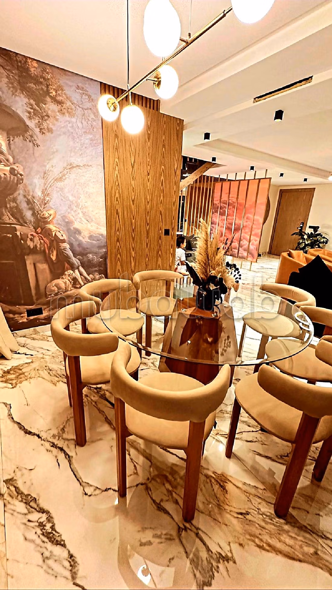 Beau duplex moderne à vendre sur la ville verte de Bouskoura, refait à neuf avec beaucoup de goût, de 197m², se compose d'un double salon, coin salle à manger, petite terrasse, toilette invités, cuisine équipée, avec buanderie et chambre de personnel, et à l'étage , une suite parentale, avec un dressing moderne, coin fauteuil, et une salle de bain en marbre, deux autres chambres, et une deuxième salle de bain.