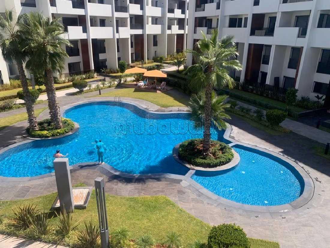 Bel Appartement en location joliment meublé avec gout Neuf avec des matériaux nobles, orienté plein sud avec vue piscine, situé dans une résidence sécurisée, composant d'un salon avec terrasse donnant sur piscine, coin salle à manger, cuisine équipée avec buanderie, suite parentale avec salle de douche à l'italienne, terrasse, placard de rangement, 2 chambres à coucher avec salle de douche, garage. piscine