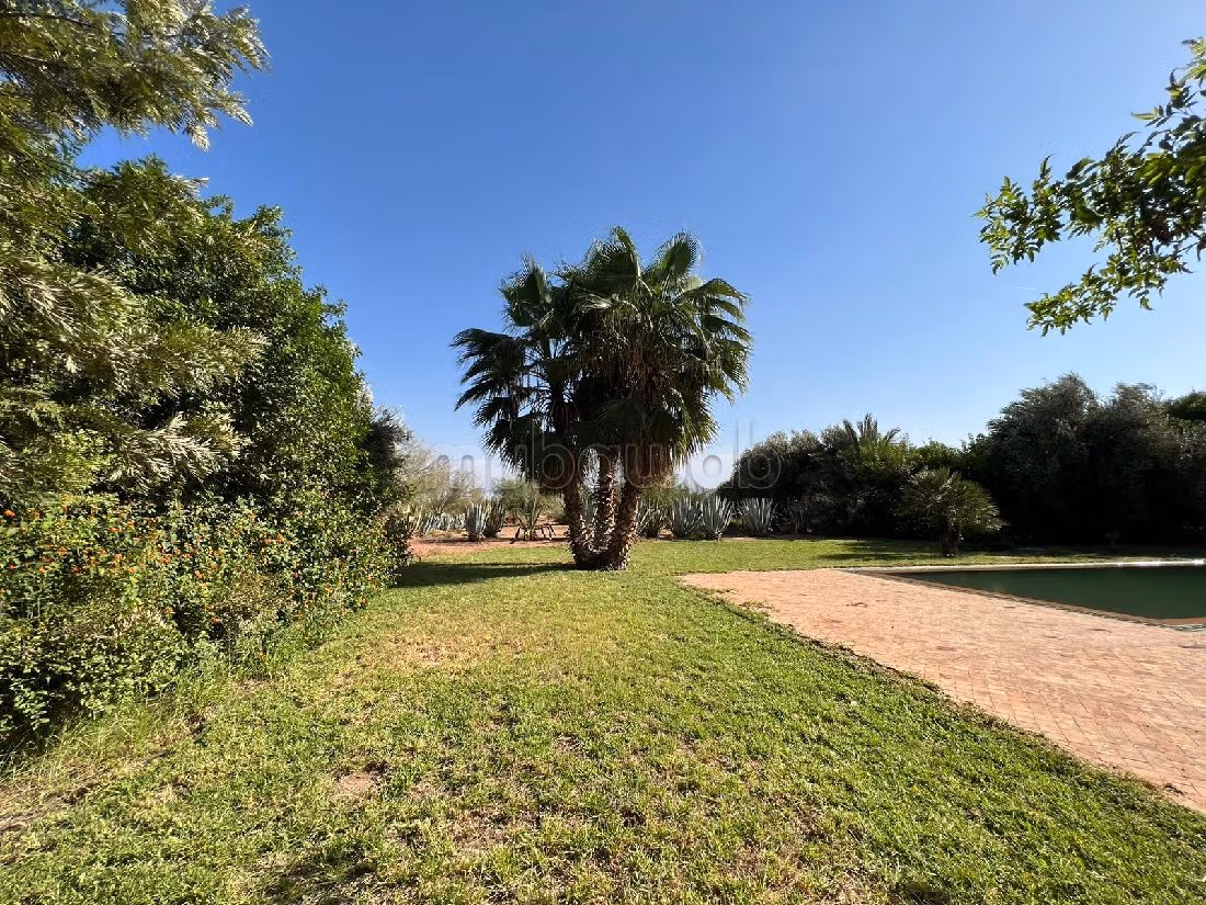 Au rez-de-chaussée: un triple séjour avec cheminée donnant accés à la terrasse, un espace salle à manger, une cuisine équipée, une chambre pour le personnel, WC visiteur, une chambre à coucher avec salle de douche, un hammam, un joli jardin arboré avec une belle piscine sans vis-à-vis,