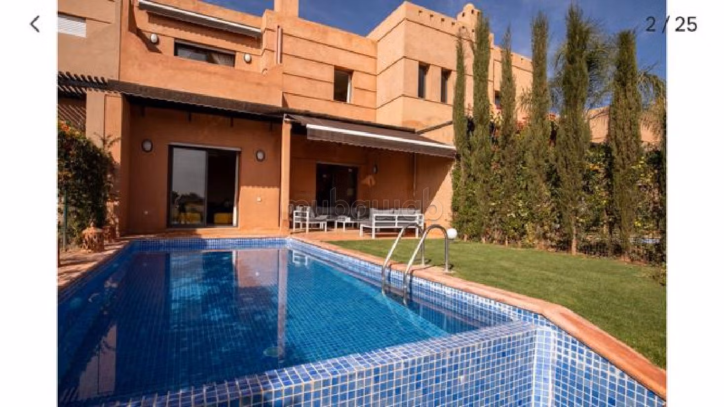 Soyez le premier à visiter cette villa en vente à Marrakech. Confort et sécurité avec service de conciergerie, piscine, cheminée et climatisation. Les extérieurs se composent d'un jardin et d'une terrasse. Spacieux salon européen.