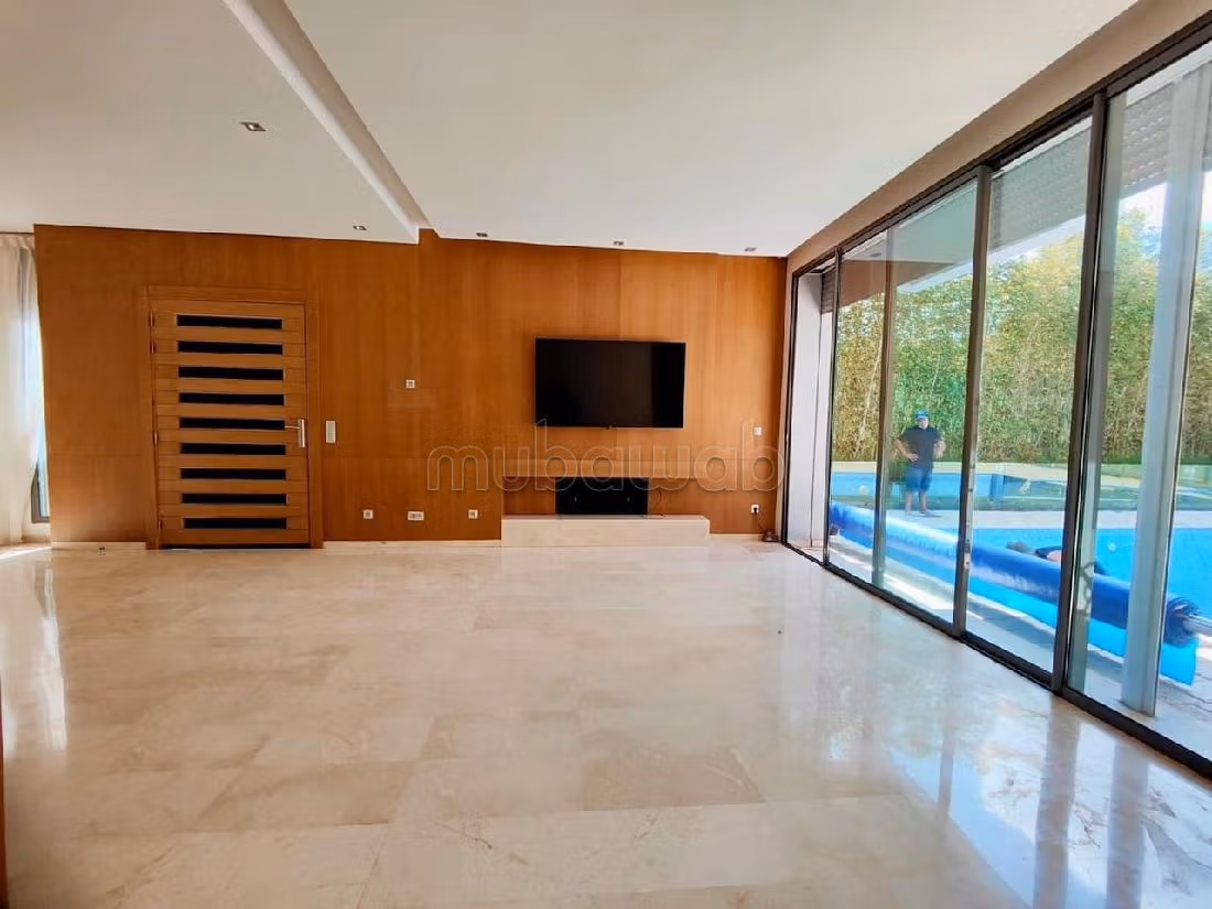 trés belle villa moderne d'un superficie 638m² de terrain construite sur deux niveaux , située dans une résidence fermée très calme à Bouskoura en deuxième ligne du Golf, ensoleillée sur les trois façades ,