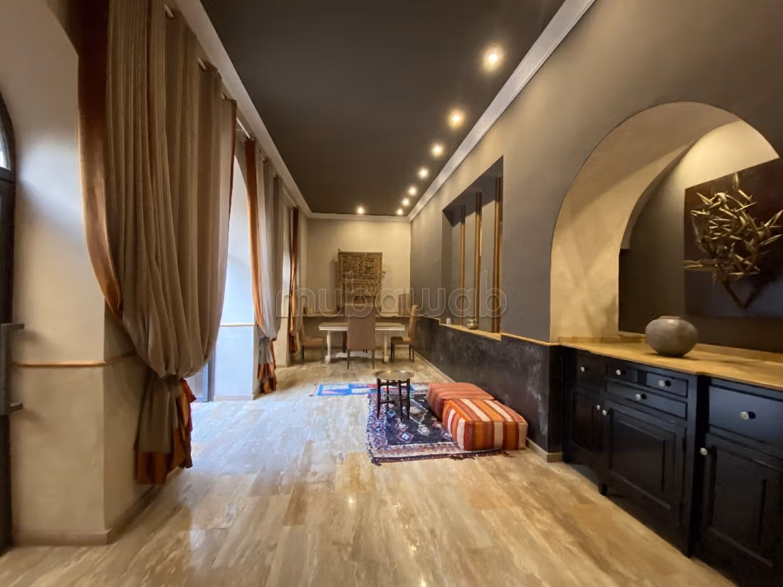 Nichée au cœur de Marrakech, ce Palais maison d’hôte clair et lumineux est conçu de plusieurs bâtiments historiques datant du début du 17ème siècle, titré avec permis d’habitation. S'étendant sur environ 1300m² de vie luxueuse.