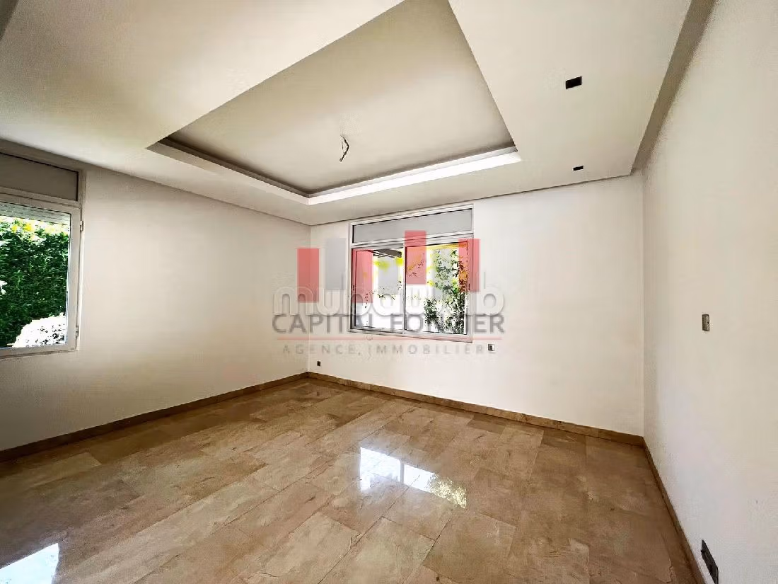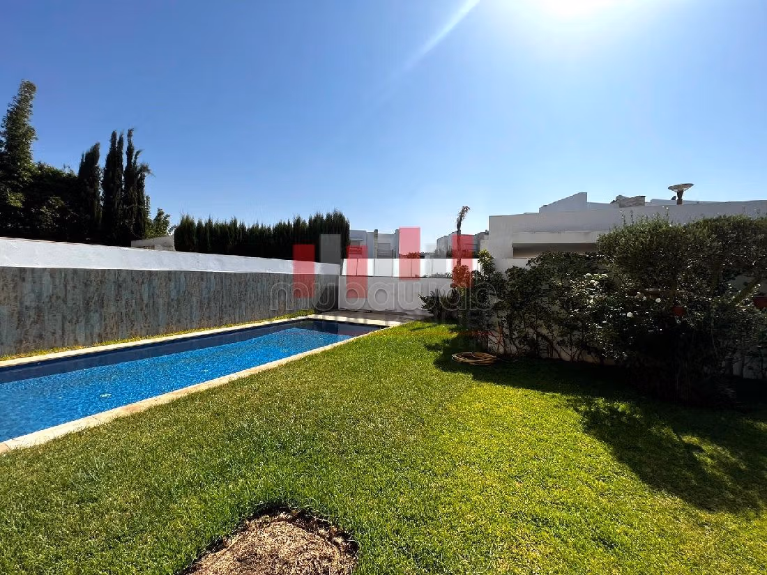 Superbe villa située dans une résidence fermée et sécurisée à la ville verte , elle se compose d’un double salon avec coin cheminée et salle à manger donnant sur un beau jardin arboré avec piscine , un séjour , une salle d’eau invités , une cuisine avec chambre de personnel et buanderie .