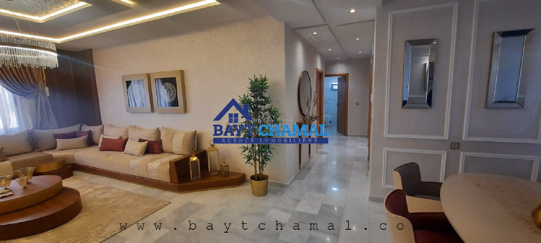 BAYT CHAMAL vous propose un appartement luxieux, à Boubana. Il s’agit d’un bien de 200 M2, sis dans une résidence fermée, sécurisée, équipée de piscine et espace de jeux pour enfants.