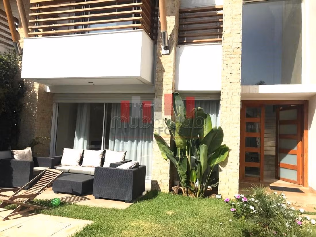 Très joli villa semi meublée , située dans une résidence fermée et sécurisée à Bouskoura , elle se compose d’un double salon avec coin cheminée donnant sur un jardin arboré avec piscine , un coin salle à manger , une salle d’eau , et une cuisine entièrement équipée avec chambre de personnel . A l’étage 3 chambres dont la suite parentale avec dressing et salle de bain et deux autres chambres avec une salle de bain commune .
