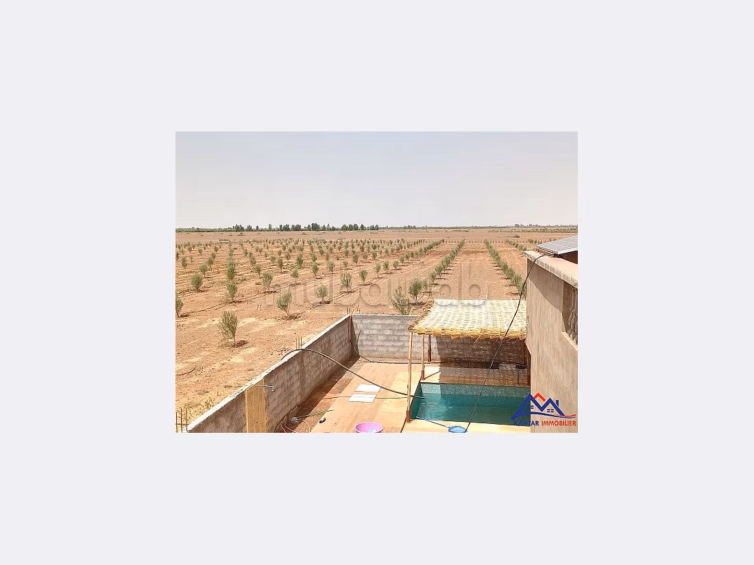 Charmante maison de campagne à vendre, nichée au cœur une oasis de tranquillité, qui se trouve à 70km de Marrakech, cette propriété offre un cadre idyllique pour une vie paisible ou des escapades relaxantes. La maison se compose de deux salons spacieux, trois chambres élégamment aménagées, un séjour accueillant, et trois salles de bains modernes.