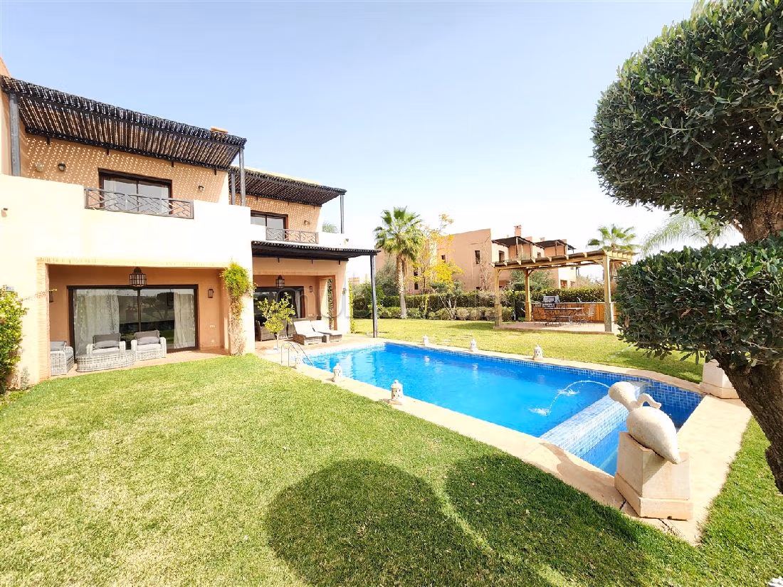 CETTE LUXUEUSE VILLA AUX LIGNES EPUREES EST SITUEE EN PREMIERE LIGNE SUR LE GOLF "LES JARDINS DE L'ATLAS" A MARRAKECH KM13 ROUTE DE L'OURIKA.