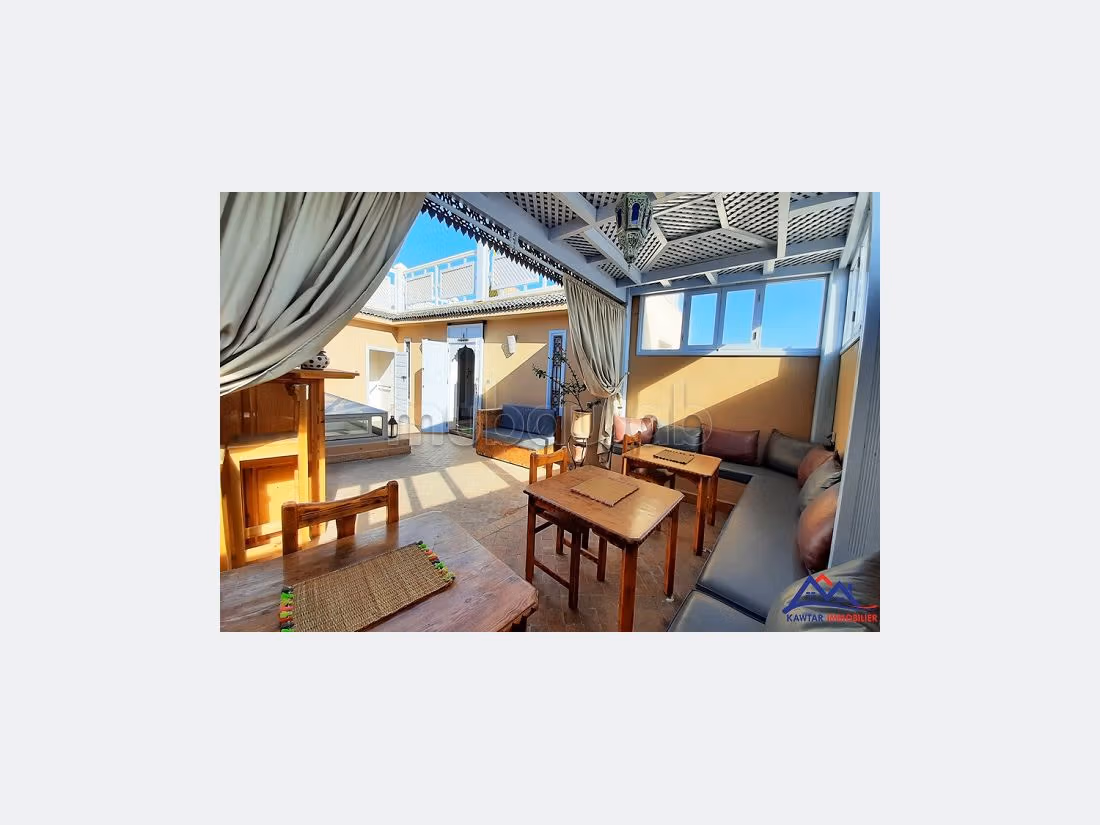 à Essaouira Maroc en plein de coeur de la médina Essaouira, composé de 3 appartements indépendants entièrement équipés, plus deux terrasses et un appartement de fonction au rez-de-chaussée.