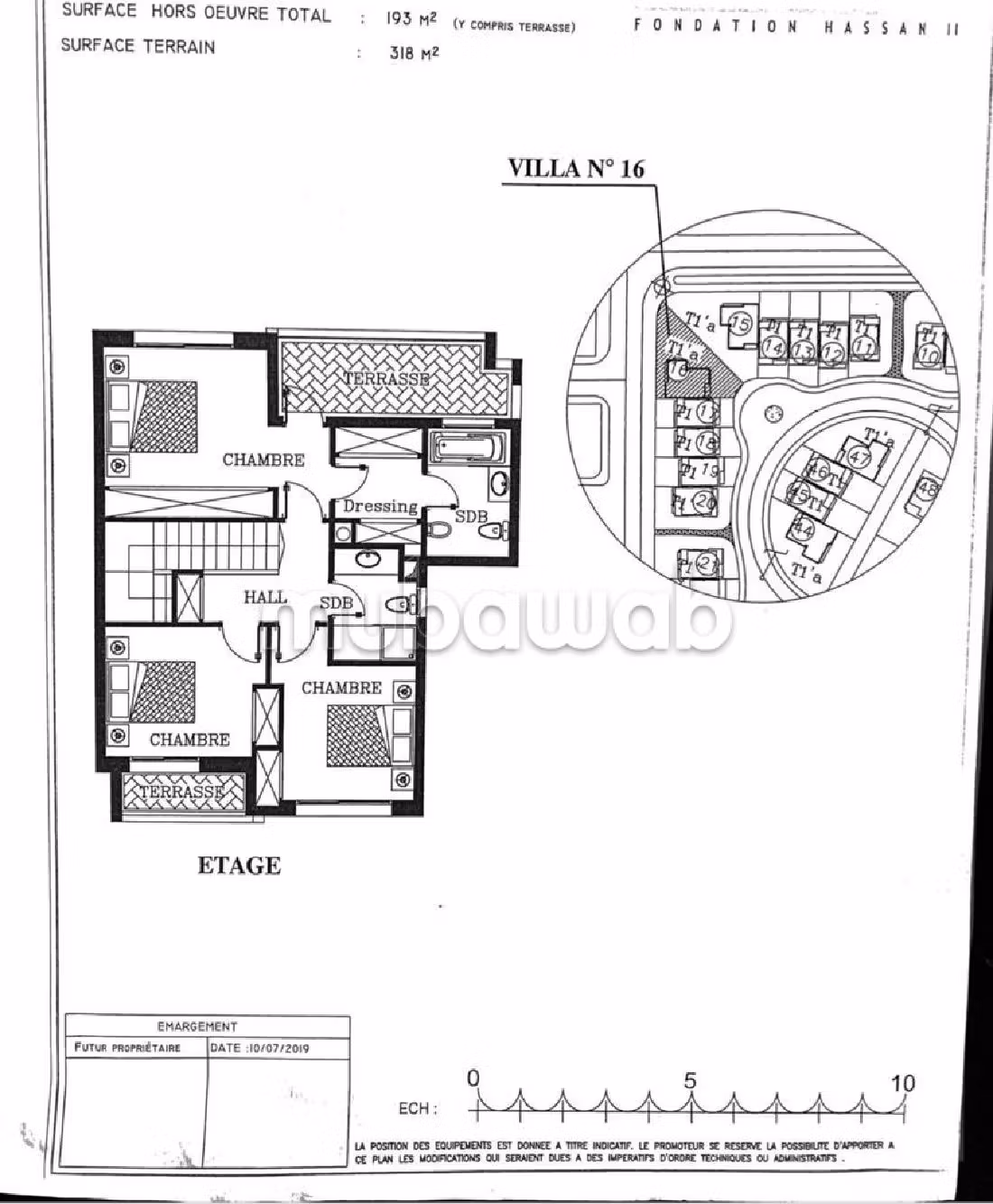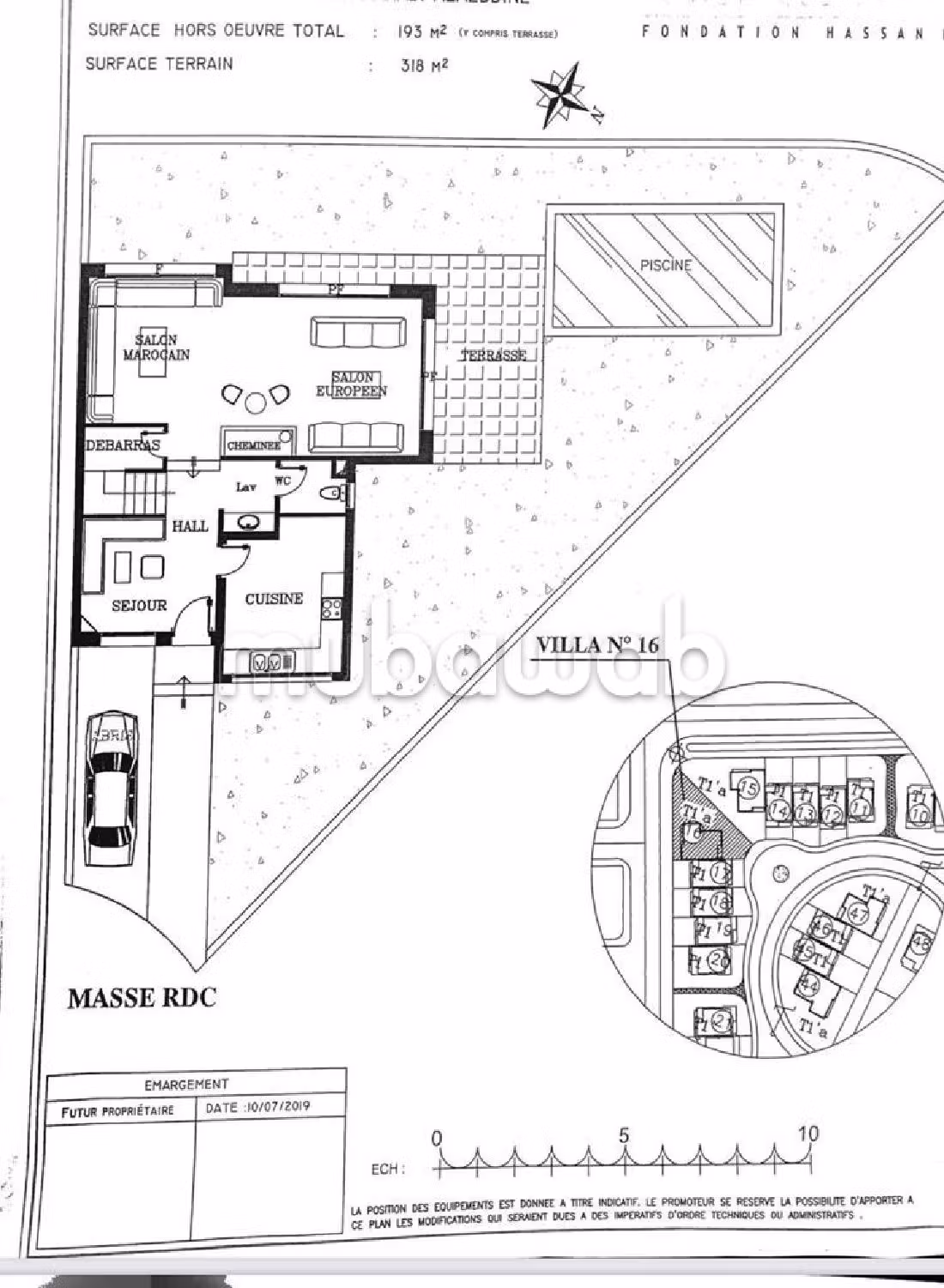 villa à vendre à Dar Bouazza, offrant 318 m2 de terrain dont 250 m2 habitables sur deux niveaux. Au rez-de-chaussée, un spacieux séjour accueille les visiteurs dès l'entrée, complété par un double salon moderne et une grande cuisine équipée. Également au rez-de-chaussée, une salle d'eau pour les invités est disponible. À l'étage, une suite parentale avec dressing et salle de bain, deux chambres à coucher dont une avec balcon et salle de bain commune, ainsi qu'un espace de rangement et un petit séjour. La villa est agrémentée d'une piscine et entourée d'un jardin qui enveloppe toute la maison, offrant ainsi un cadre verdoyant et paisible, avec une belle terrasse pour profiter pleinement de l'extérieur.