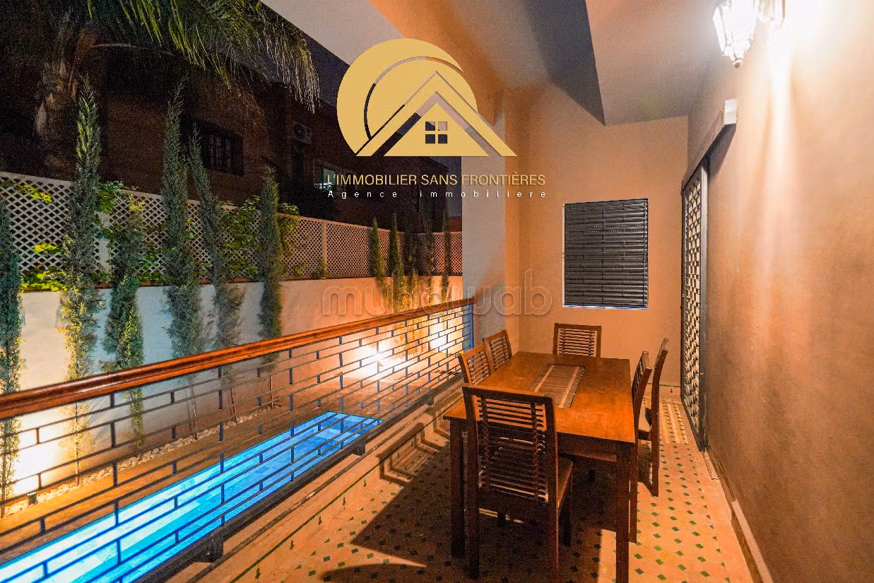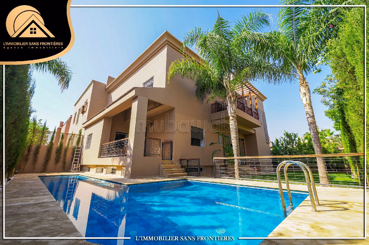 Salon marocain - salon européen - chambre -cuisine équipée - toilette invité -salle de bain - piscine - jardin -clim -caméra -garage électrique -chauffage - panneau solaire - puit