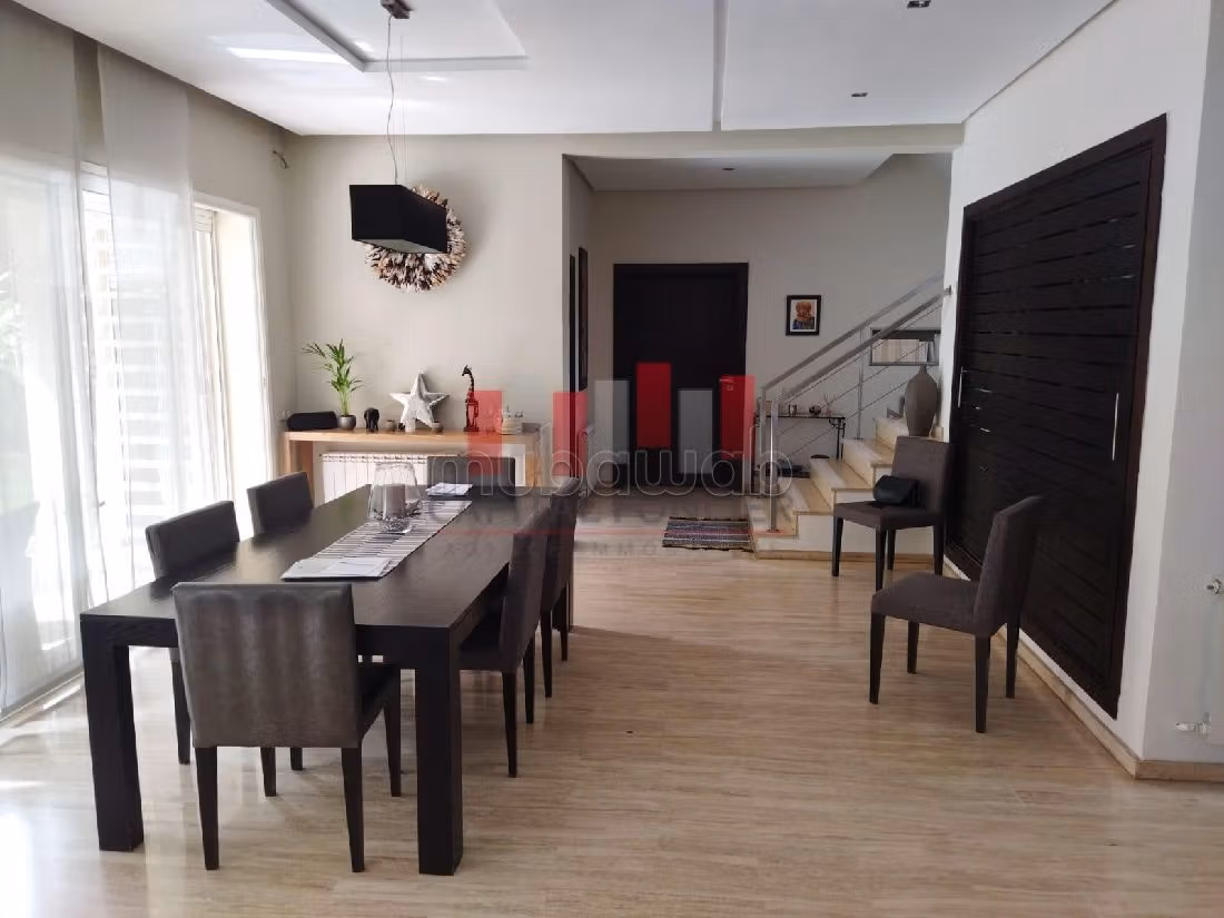 SIDI MAAROUF: PROCHE CASANEASHORE Villa à louer meublé Moderne au style épuré et bien agencée, avec piscine chauffée climatisation centralisée. Réception ouverte chambre (séjour ou bureau). Belle cuisine, 4 chambres à l'étage dont grande suite parentale. Sur un terrain de 371m2, avec sous sol spacieux comprenant un double espace, 1 chambre, sdb et cellier. Surface habitable : 400m2